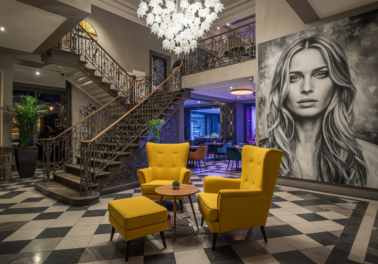 Every inch of this unique multilevel gallery-cum-lounge is bursting with eclectic elements and every space is designed to create an intimate ambiance but for different dining experiences. In the main dining area, a deep blue light spills from the suspended 5,500-gallon aquarium, bathing the black-and-white checkered floor in a gentle glow. You can seat yourself at a table, one of the plush booths or take a table with a view from the second floor.