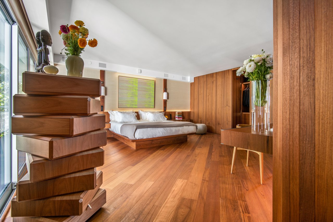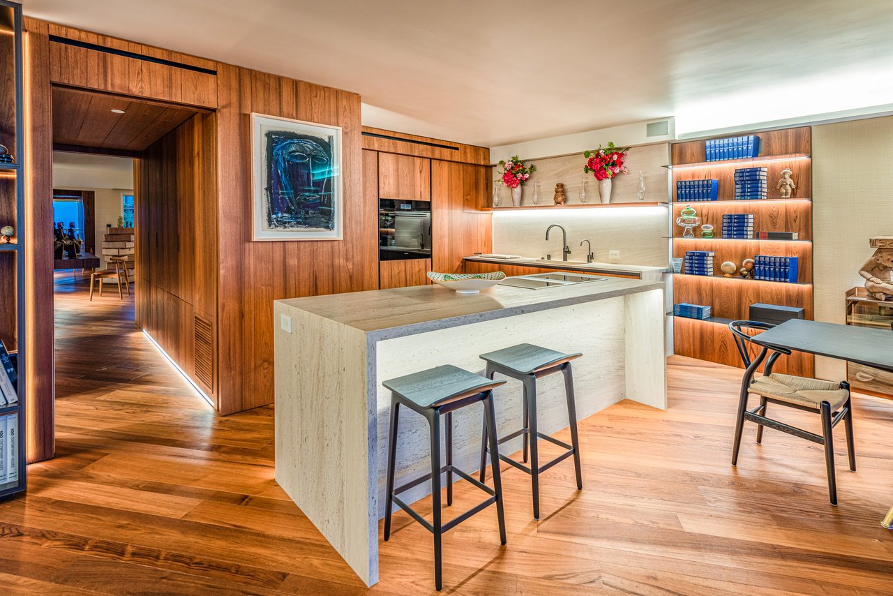 Experience boutique oceanfront living in this extraordinary custom residence at 101 Ocean Avenue, one of the West Coast's most exclusive residential addresses. Interiors showcase exceptional Italian craftsmanship, including custom Burmese teak millwork by Italian artisans and imported Italian stone, cabinetry, and finishes that evoke a bespoke European villa -- exceeding even an Aman executive suite in scale and privacy. Open living and dining areas extend through expansive glass doors to a private ocean-facing terrace with unobstructed coastal views, while the chef's kitchen features integrated Gaggenau and Miele appliances. The private suite offers a tranquil retreat with custom storage, a built-in television, and a spa-style bath with teak and limestone finishes, rain shower, and traditional Japanese soaking tub. Over the past three years, the building has undergone a comprehensive, design-forward renovation, elevating every common space, system, and amenity to modern luxury standards, with a focus on timeless materials, hospitality-level finishes, and environments intentionally designed to foster both privacy and community. Managed by five-star hospitality professionals, the building provides exceptional discretion and service, with amenities including a 24-hour front desk with armed security, pool and spa, full gym, yoga studio, dog park, and a premier residents' lounge with 180-degree views of the Pacific Ocean and the Santa Monica Pier. Steps from the beach and moments from Giorgio Baldi, Golden Bull, Canyon Square, Capo, Palisades Park, Montana Avenue, and the best of coastal Santa Monica, this residence represents a rare convergence of privacy, architecture, service, and location refined coastal sanctuary for those who value discretion and uncompromising quality.