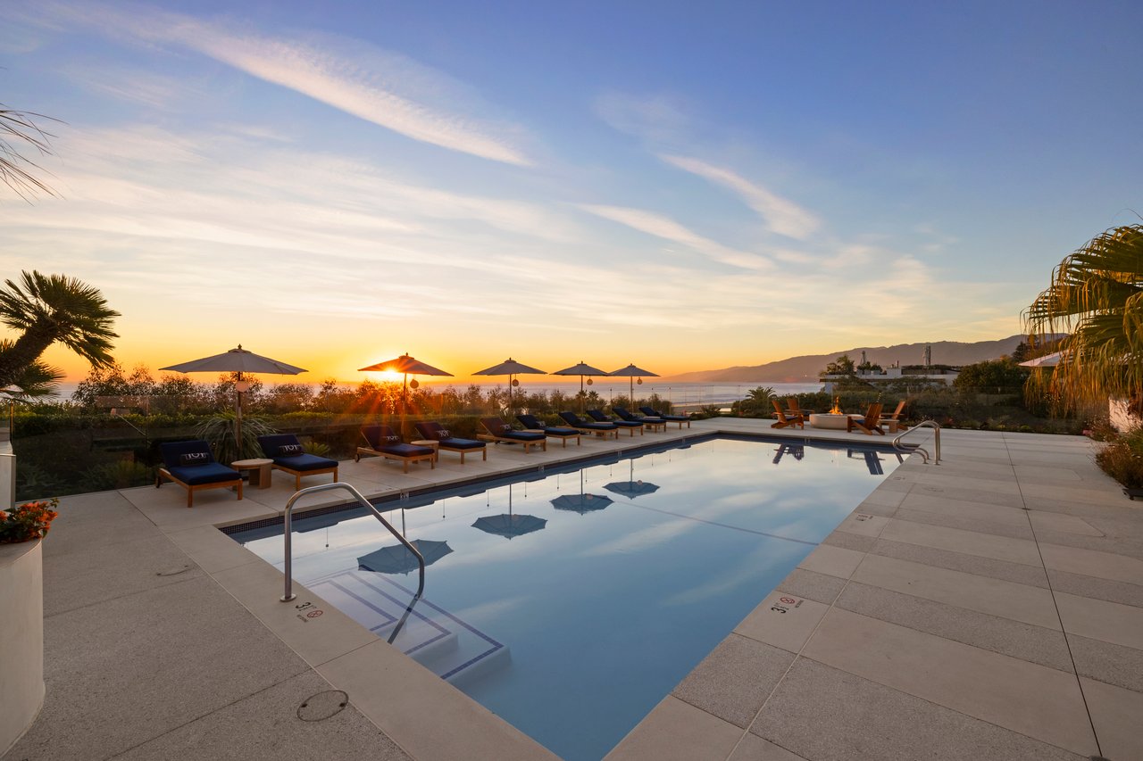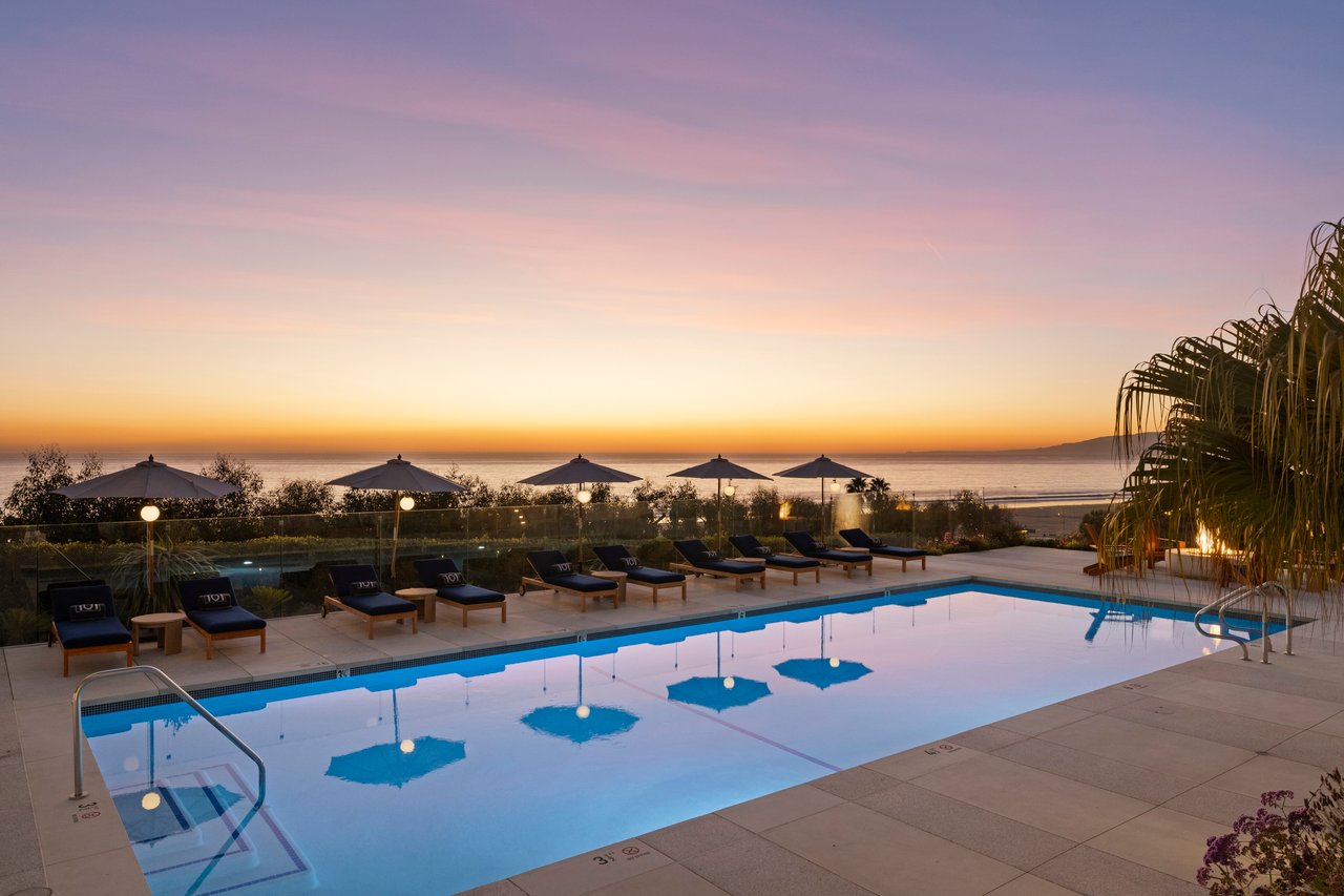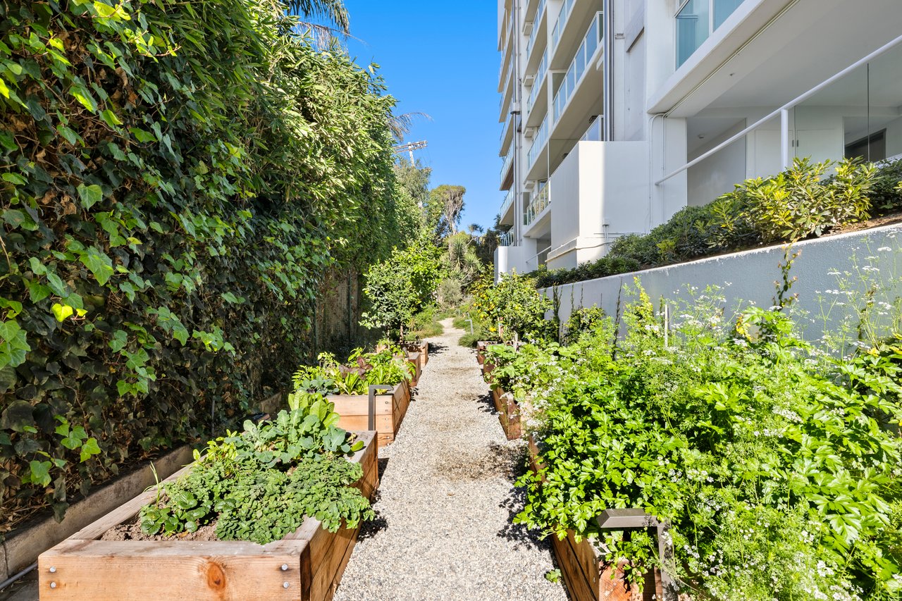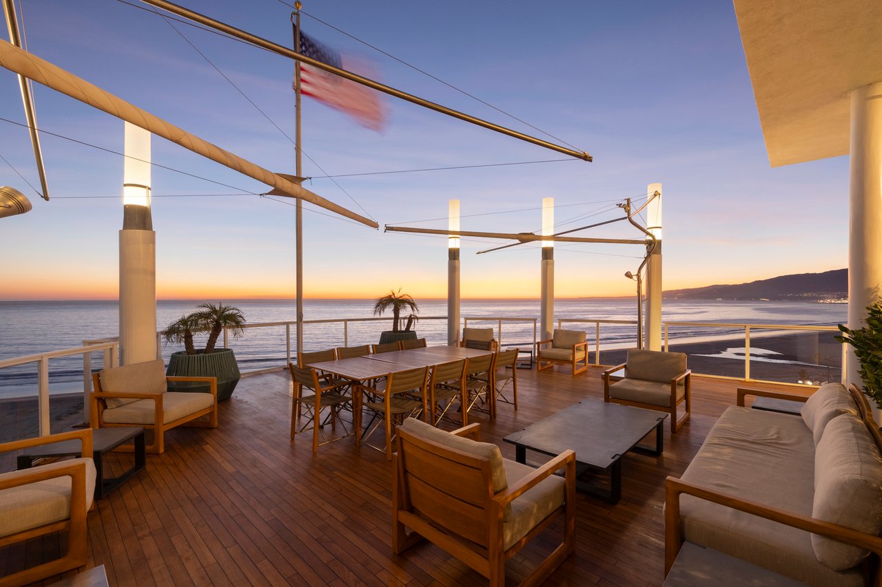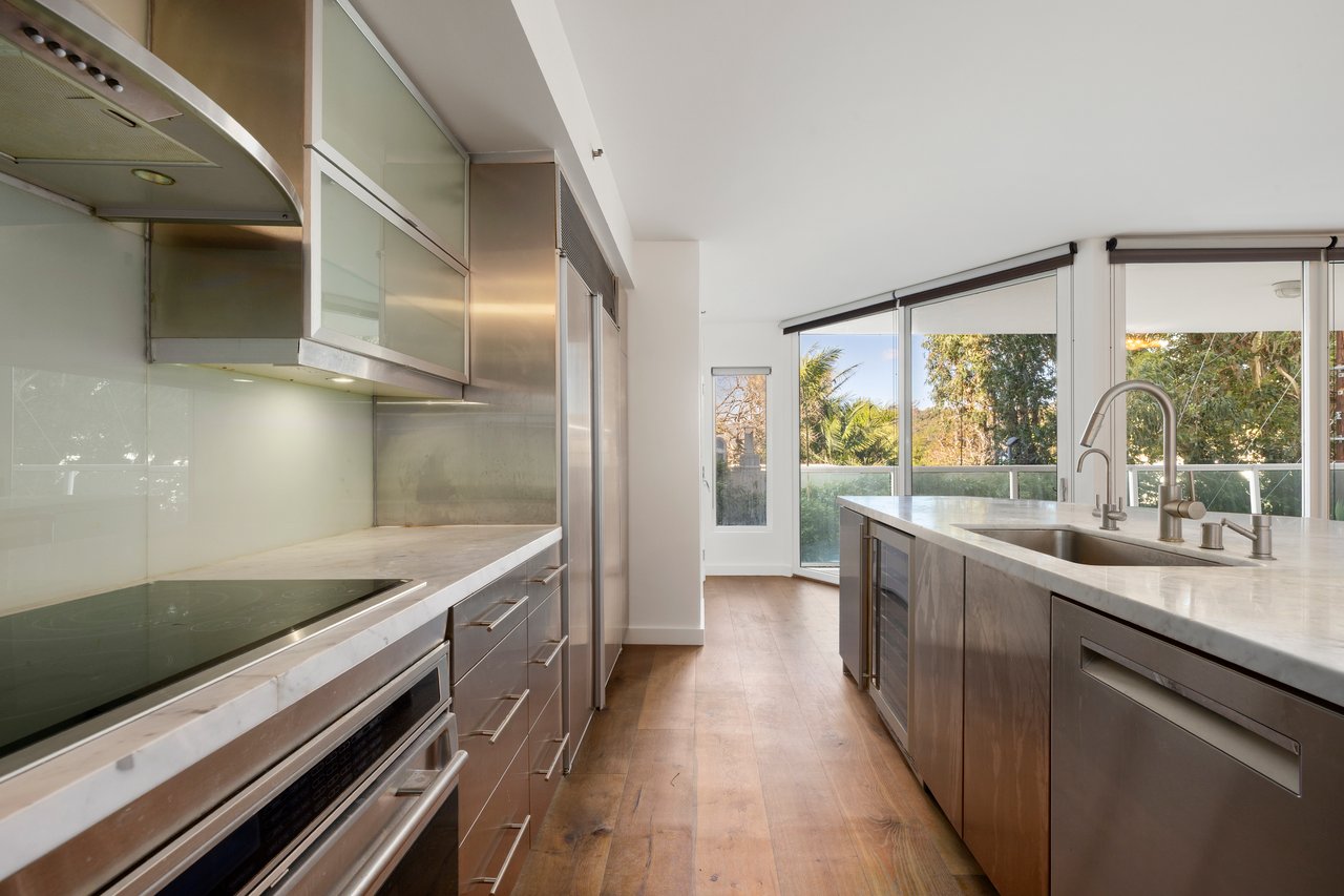 Experience the pinnacle of modern coastal living in this custom 2-bedroom, 2-bathroom residence at 101 Ocean Ave, one of Santa Monica's most iconic buildings. Framed by ocean views and lush verdant surroundings, floor-to-ceiling windows throughout create a serene, garden-like atmosphere that feels worlds away from the city while remaining steps from the sand. The generously scaled living and kitchen combination is anchored by bespoke built-ins, custom glass cabinetry, and a kitchen featuring marble countertops, wine display, and slab stone island. No unit in the building offers more outdoor entertaining space than this one, combining a front balcony with ocean views, and a sprawling east-side patio complete with built-in seating, making it an exceptional setup for hosting or simply enjoying the coastal air. Hardwood floors carry through both bedrooms, each with private deck access. The building is managed by five-star hospitality professionals, and features a 24-hour front desk and freshly reimagined grounds including pool and spa, multiple curated seating areas, an outdoor kitchen with BBQ and pizza oven, a full fitness center, yoga studio, dog park, organic gardens, and a sky lounge with sweeping Pacific views. Steps from the sand and within easy reach of Giorgio Baldi, Golden Bull, Canyon Square, Montana Avenue, and downtown Santa Monica, this is a rare convergence of privacy, craftsmanship, and location.