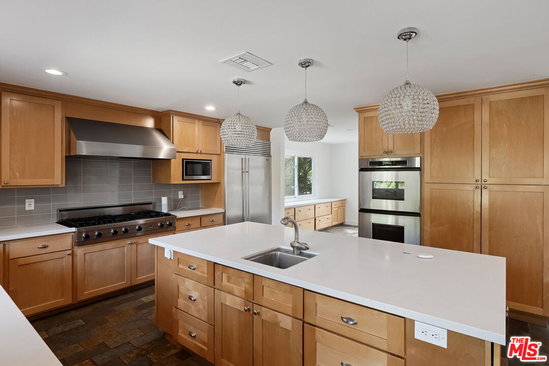 Here is your chance to come back home to Pacific Palisades! This fully remediated home with newly flushed ducts and completely replaced insulation, has also been beautifully maintained. The 4-bedroom, 3.5-bath home offers an ideal blend of comfort, functionality, and smart home features. The layout includes a guest bedroom with an ensuite bath (walk-in shower) downstairs, while upstairs, the primary suite boasts a luxurious ensuite bath with a separate soaking tub, walk-in shower, and dual sinks. Two additional bedrooms share a full bath with a double sink vanity and a tub/shower combo, and a convenient half-bath is located downstairs for guests. Storage is a standout feature from the spacious primary walk-in closet to a full linen closet, built-ins, and abundant storage throughout the home. Additional highlights include a dual-zoned heating & A/C systems for energy efficiency and there is also a new sewer line. The smart home system includes the lighting, thermostat, and doorbell, and there are new springs and an opener for the garage door. This is a thoughtfully upgraded home that combines modern convenience with incredible storage perfect for comfortable living.