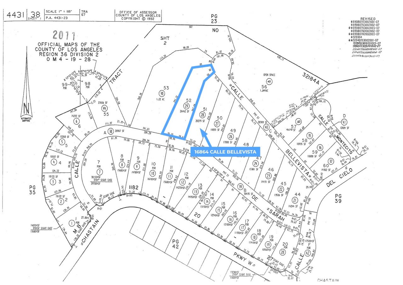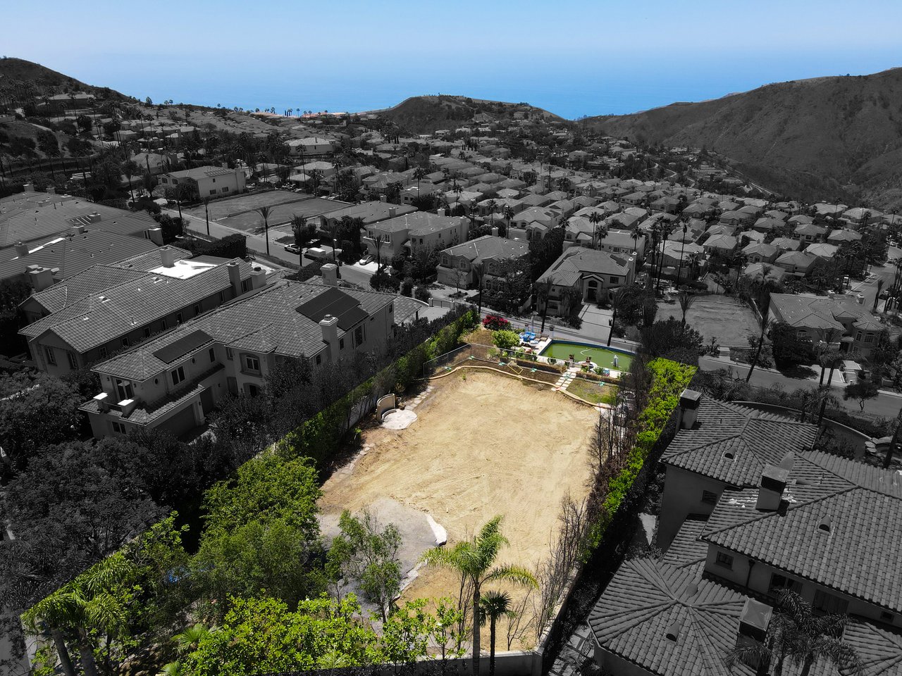 Welcome to 16864 Calle Bellevista in the guard gated Enclave. This 26,572 sf land offering is arguably one of the best ocean view sites in the Palisades Highlands and sits at the end of a cul de sac with nearly every home on the street untouched by the recent fires. Phase 1 & 2 debris removal have been completed and the prior infinity pool and lower outdoor level with over $1,000,000 of site work appears to still be intact. The prior home was 5,461sf so with the current ordinance a new buyer could potentially build over 6k sf above grade. Owner has started working on plans by Roman James Design Build who is a world renowned architecture and design firm. This is an incredible opportunity for anyone looking to be part of the expedited rebuild process and not be surrounded by construction for years to come. The home is also part of the Summit Club which gives owners access to tennis courts & pickleball courts, gym, additional heated pools & spa, party rooms, and childrens playground.
