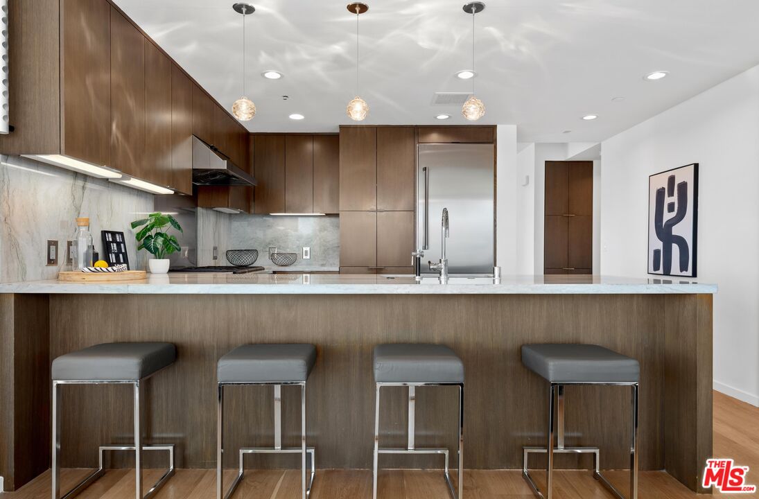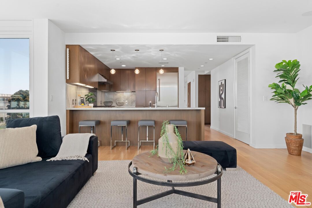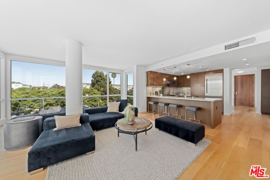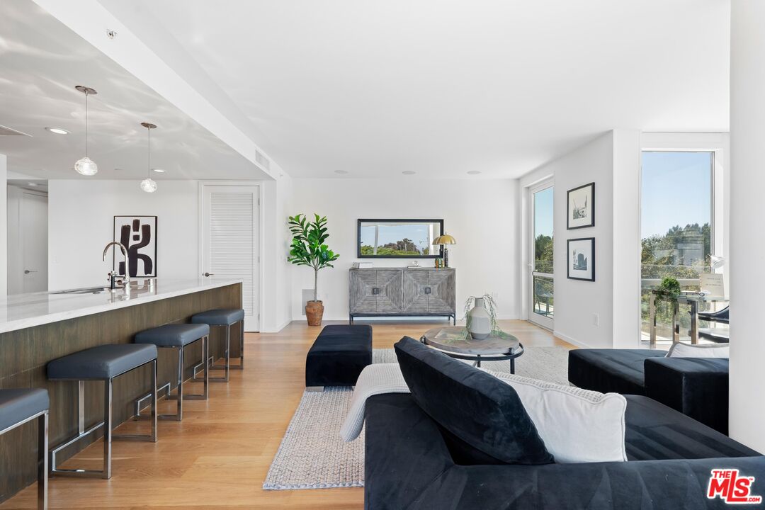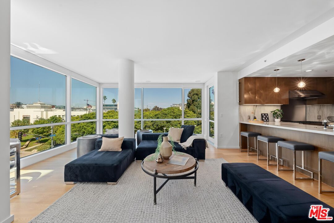 Welcome to your coastal sanctuary on Ocean Avenue in Santa Monica located in the prestigious Waverly building, designed by world-renowned architect Marmol Radzinger. This sun-drench corner unit exudes both elegance and comfort, featuring expansive floor-to-ceiling windows that flood the space with natural light and offer captivating panoramic views of the lively park, city skyline, mountains, peek-a-boo ocean and beyond. The living area is thoughtfully designed for both relaxation and entertaining, featuring sleek, modern finishes. The open-concept kitchen comes with stone countertops, high-end appliances and ample cabinetry that blend style and functionality effortlessly. Retreat to the primary suite, which offers the same stunning views and features a luxurious en-suite bathroom with a spa-like ambiance, complemented by two custom walk-in closets. An additional den and half-bath enhances convenience and comfort, making it perfect for hosting guests. Step out onto one of the three private balconies where you can enjoy your morning coffee or unwind at sunset, savoring the fresh ocean breeze and picturesque surroundings. Amenities include twenty-four/seven doorman and concierge services, a state-of-the-art fitness center by Equinox, a pet spa and a sky lounge featuring a full kitchen, grill and bar. With prime location, this condo offers not just a modern and sophisticated living environment but also proximity to the beach, airport and Santa Monica's renowned dining, shopping and entertainment venues. Experience the best of coastal living while perched above the city.