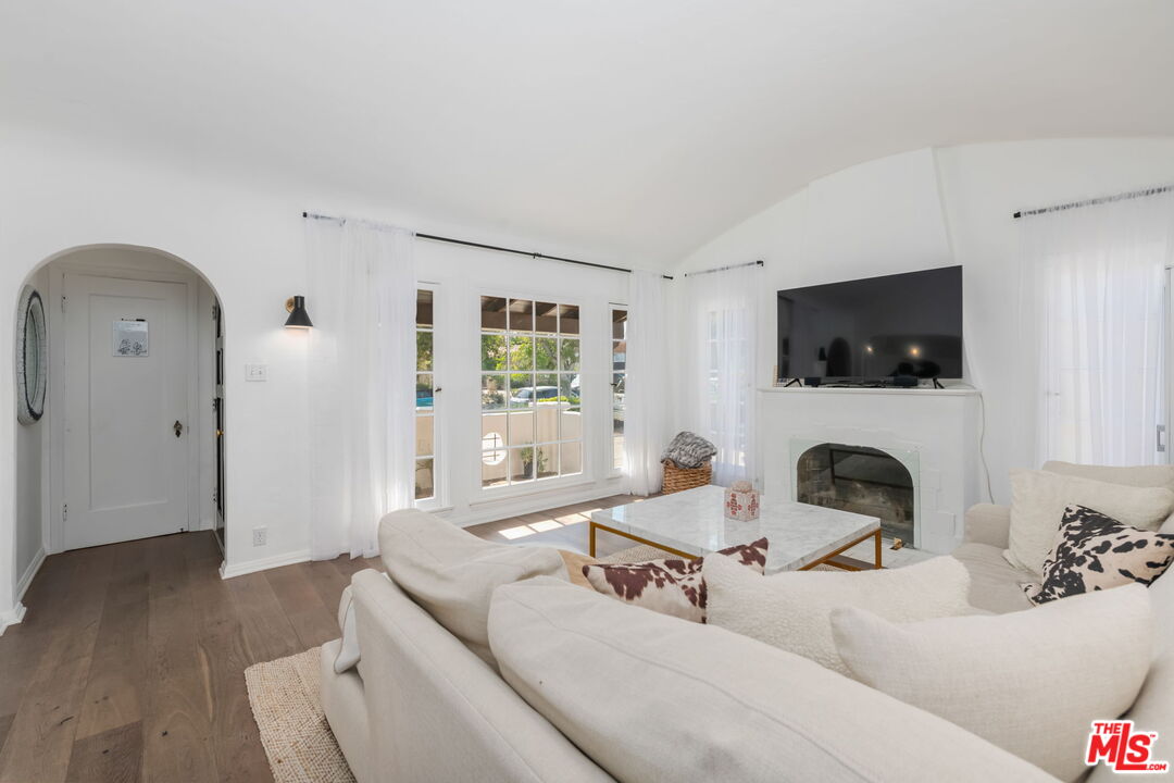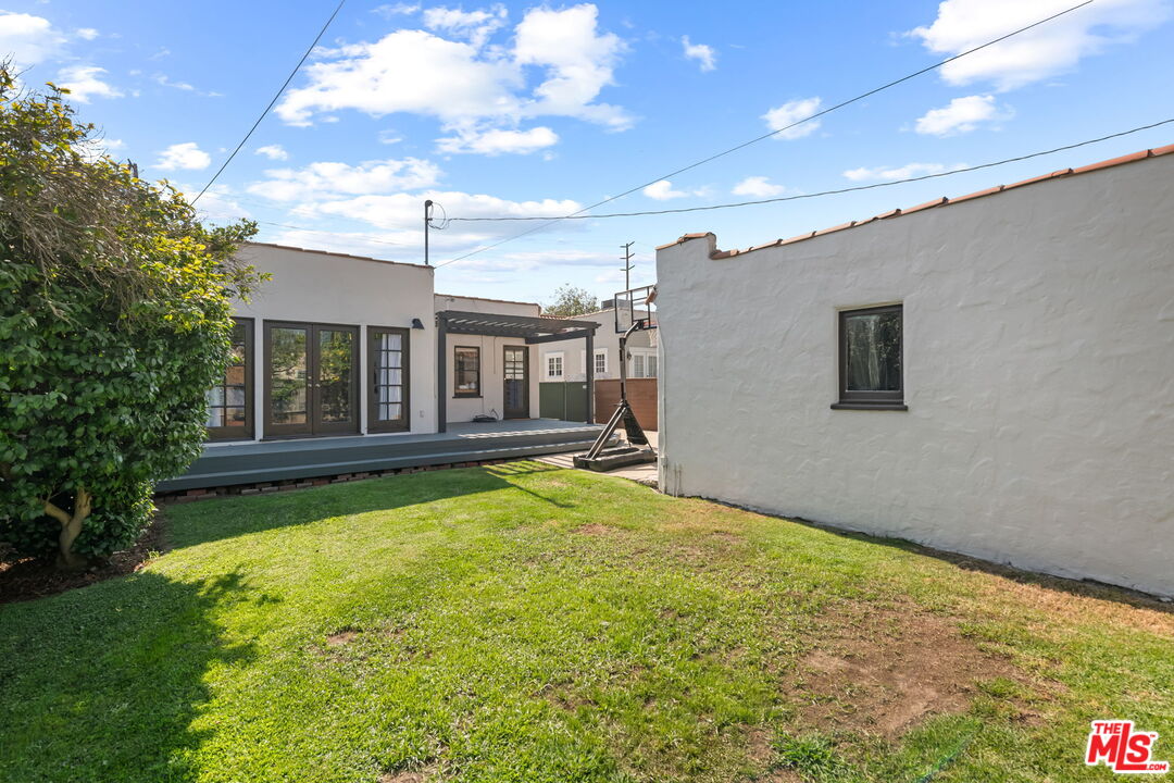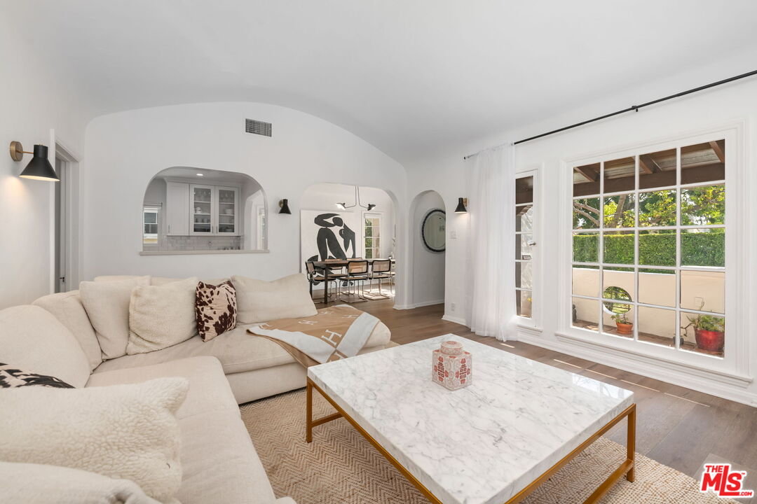 Remodeled 3 bed/2 bath Spanish North of Olympic! Landscaped with a mature front privacy hedge and grassy yard leads to charming front tiled porch. Entry with closet opens to living room filled with natural light that includes fireplace, sconces, high barrel ceiling, authentic wood-framed windows overlooking the greenery of front yard and mature front hedge.Spacious dining room overlooking front yard opens to remodeled kitchen with quartz countertops, stainless steel appliances and newer cabinetry. Separate laundry room off kitchen with storage cabinets. 3 bedrooms, include a 2nd bedroom with backyard access, and primary suite with walk-in closet and French doors to backyard with large grassy area, mature citrus trees, entertainer's deck with pergola cover that is ideal for outside dining and relaxing, detached 2 car garage and gated driveway. Remodeled primary bathroom with dual sinks and separate shower. Additional features include recessed lighting, crown molding, newer beautiful hardwood flooring, central ac/heat, both bathrooms completely remodeled, charming archways and every room filled with natural light. Close proximity to Westfield Century City Mall, UCLA, Westwood Blvd. restaurants and retail. Just a block to Westwood Charter School. Move-in ready!