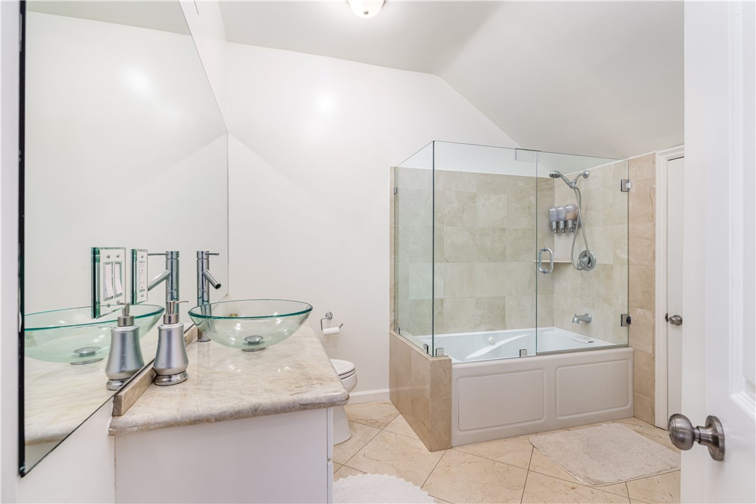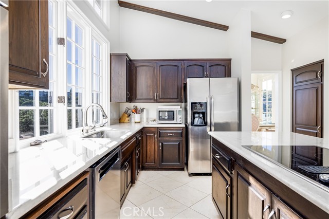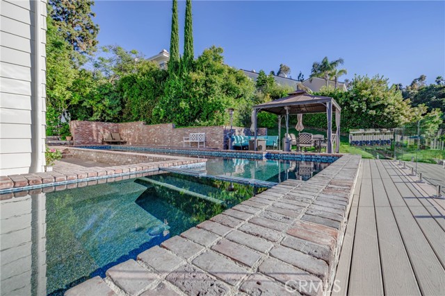 Best location in highly desirable gated Mountaingate community with amazing golf course and mountain view! One of the largest lots in the development. Rare, extensively upgraded, 4 bedroom, 2 bathroom unit with just shy of 3000 sq ft of living space. Over $400,000 in improvements! Absolutely immaculate, not to mention the spectacular views! This beautiful north facing home overlooks the golf course, mountains, and canyons. This exclusive community is nestled above Mountain gate country club and protected behind security gates with 24/7 security service. Enter this expensive home with voluminous, cathedral ceilings, and extremely bright and light floorplan. Step into luxury and elegance in the grand living room and stunning dining room, while overlooking the serene golf course and mountain views from almost every room. The gourmet kitchen features custom cabinets and top-of-the-line appliances with a cozy breakfast area. The separate family room has custom built-ins, high ceilings, and a powder bath. The spacious primary bedroom boasts a remodeled, elegant bathroom, as well as ample closets (both walk in and sliding) as well as a sitting area with French doors leading out to the yard. The additional three bedrooms share a remodeled bathroom. The yard is amazing and oversized with pebble tech, lap pool, patio, and grassy areas as well as covered patio. Ideal for entertaining or relaxing. The monthly HOA includes security patrol, 24-hour guard-gated security, exterior fire, and earthquake insurance, roof coverage, exterior paint maintenance, front yard/common area, landscape maintenance and community pool. Mountaingate is known for its spectacular hiking trails, park like ambience and security. Close to the finest shopping and dining. The newly remodeled, Mountaingate country club offers private memberships for golf, tennis, restaurants, and other social activities.