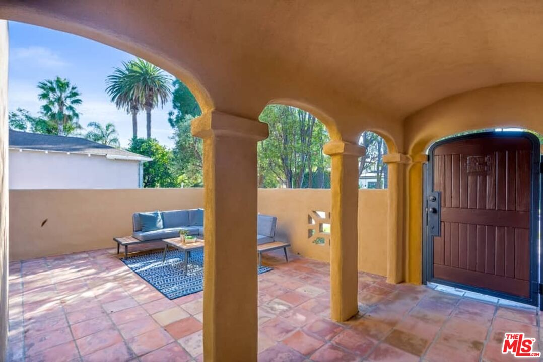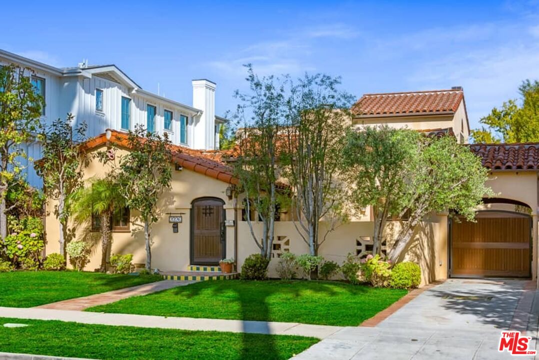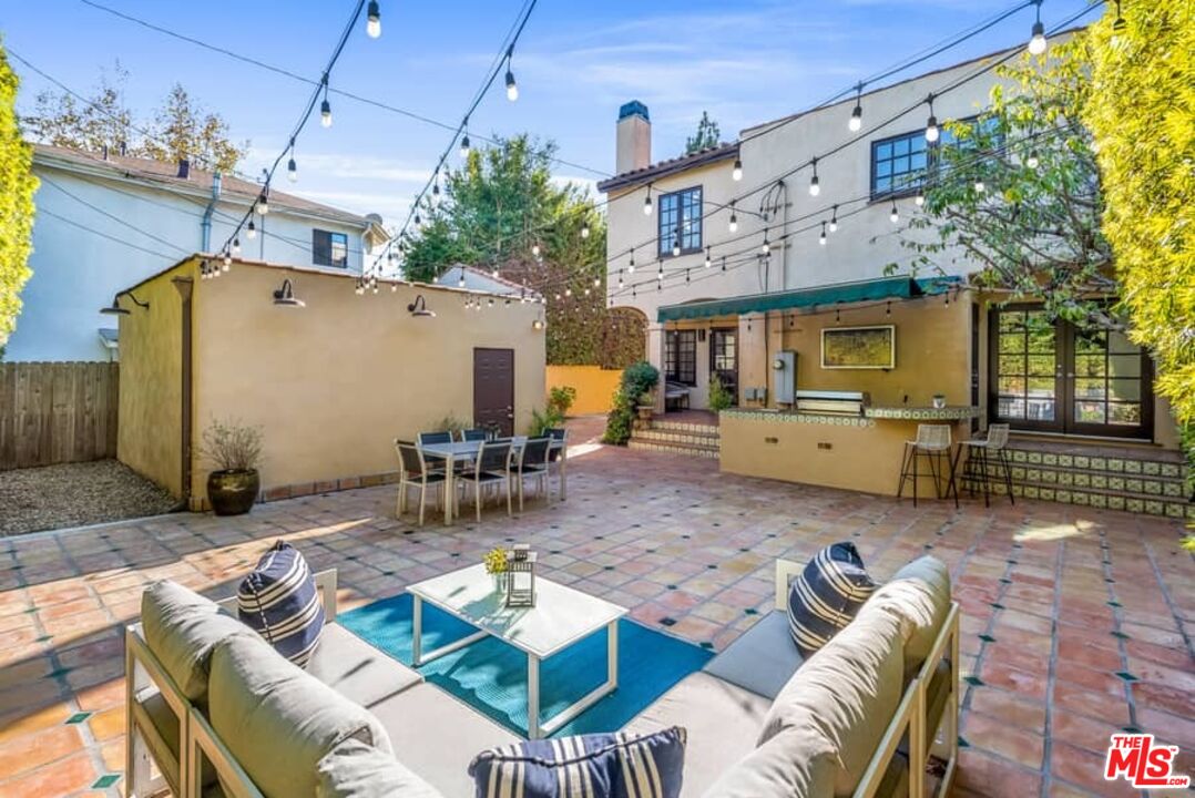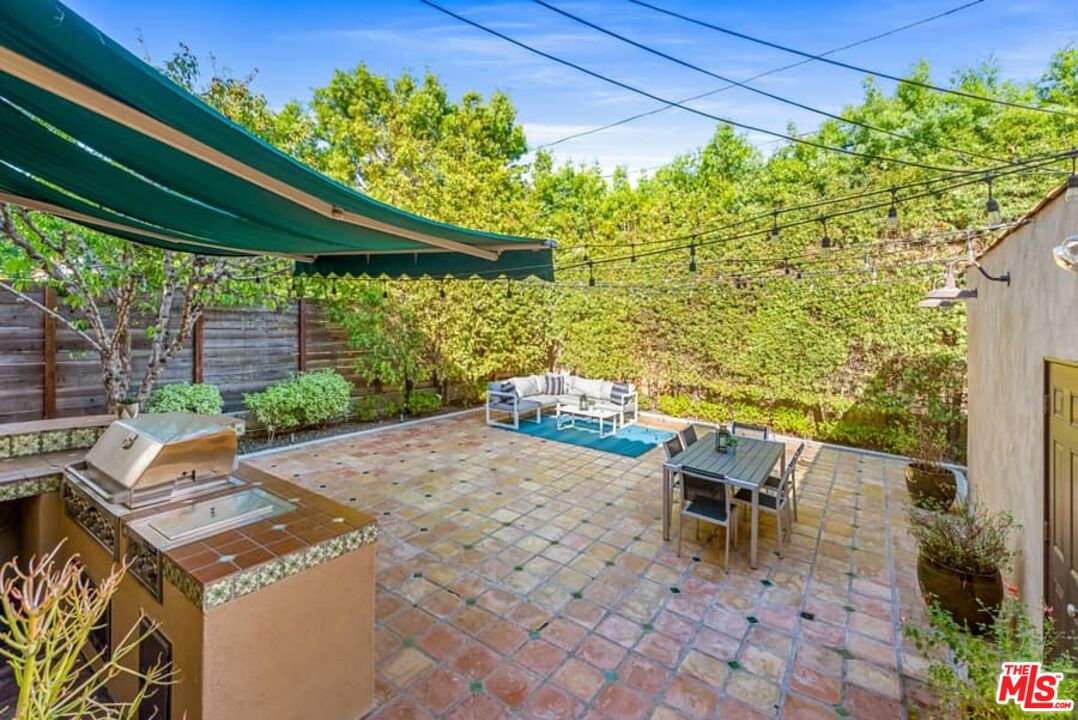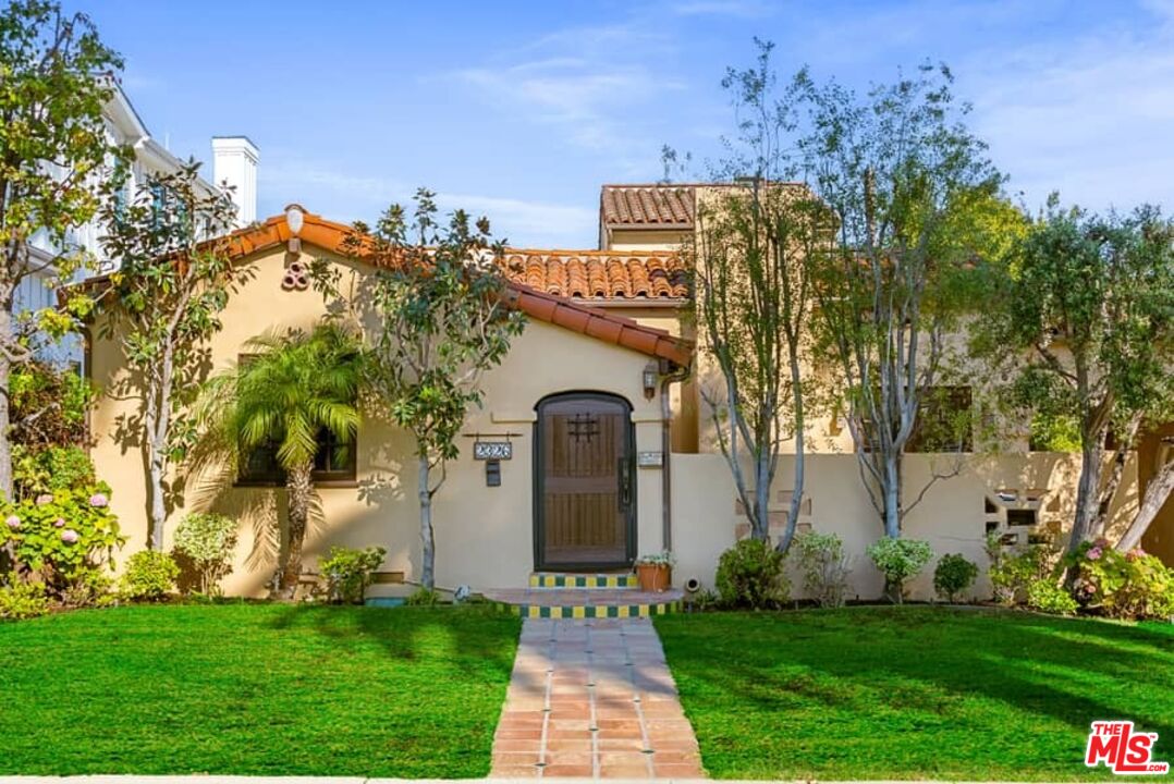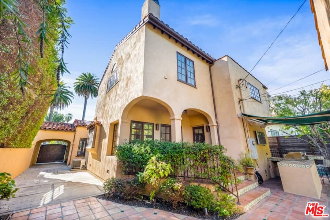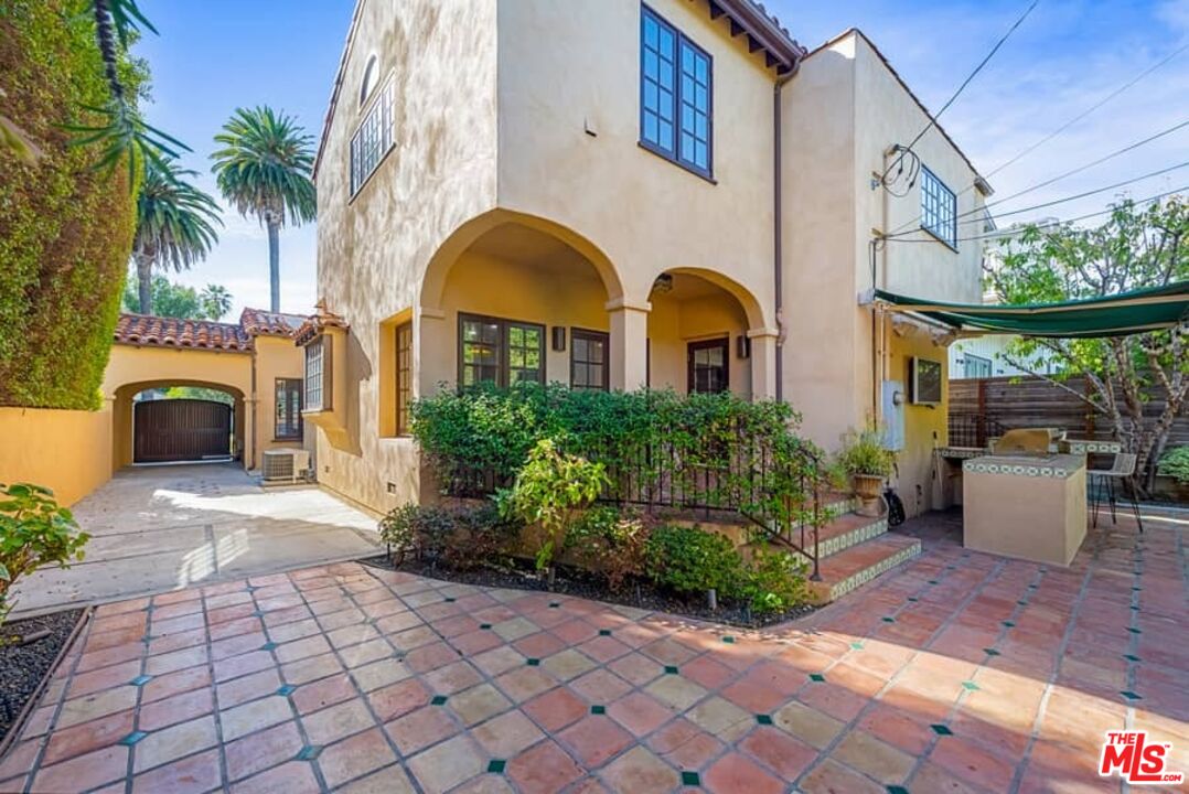 Beautifully updated Santa Barbara Courtyard 4 bed/2.75 bath 2-Story Spanish with incredible thought and detail in design and expanded floor plan, complimenting the unspoiled charm of the original character throughout. Inviting tiled front courtyard with gate opens to living room with dramatic barrel ceiling, chic wood paneled wall, fireplace with original tile design hearth, wood mantel, wall sconces and double French doors opening to front courtyard. Formal dining room with coved soffit ceiling opening to remodeled open sun-filled kitchen with stainless steel appliances including 6-burner Thermador range/oven, updated cabinetry with pantry cabinet and pull out drawers, desk workspace and breakfast nook opening to spacious family room and to the entertainer's backyard with covered back patio with archways and paver tiles to beautifully tiled backyard to create seating areas with outdoor built-in barbecue with counter covered with retractable awning, and gated driveway. 3 bed/1.75 bath downstairs, with 2 of the bedrooms including beautiful built-ins. Upstairs is the primary suite quarters with vaulted ceilings, treetop and Century City views, fireplace, 2nd laundry area, 2 custom-finished closets including a walk-in closet. Beautiful primary bath filled with natural light, dual basins, separate bath and shower and skylight. Additional features include archways, custom tiled bathrooms, hardwood floors, central ac/heat, Laundry area upstairs and downstairs, porte cochere and auto-gated driveway. Close proximity to Westwood Blvd. & Pico Blvd. restaurants and retail, Westfield Century City Mall, UCLA & Beverly Hills. Westwood Charter School.