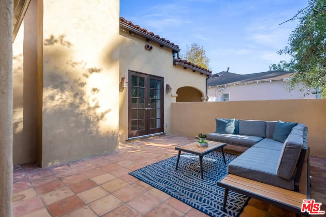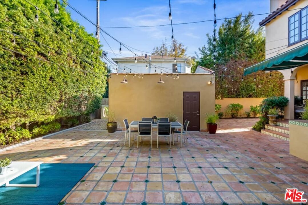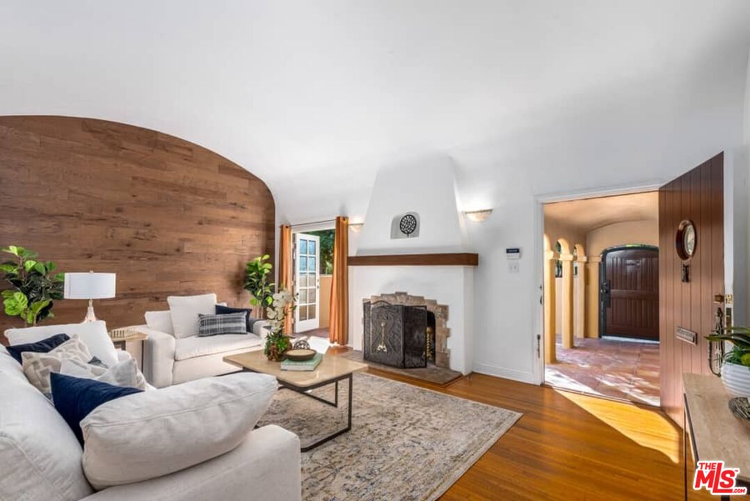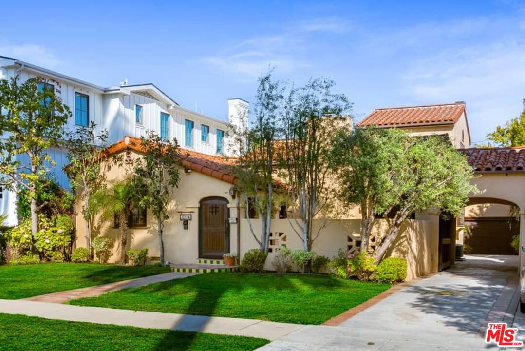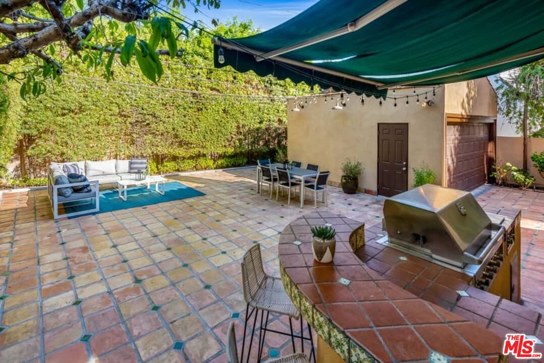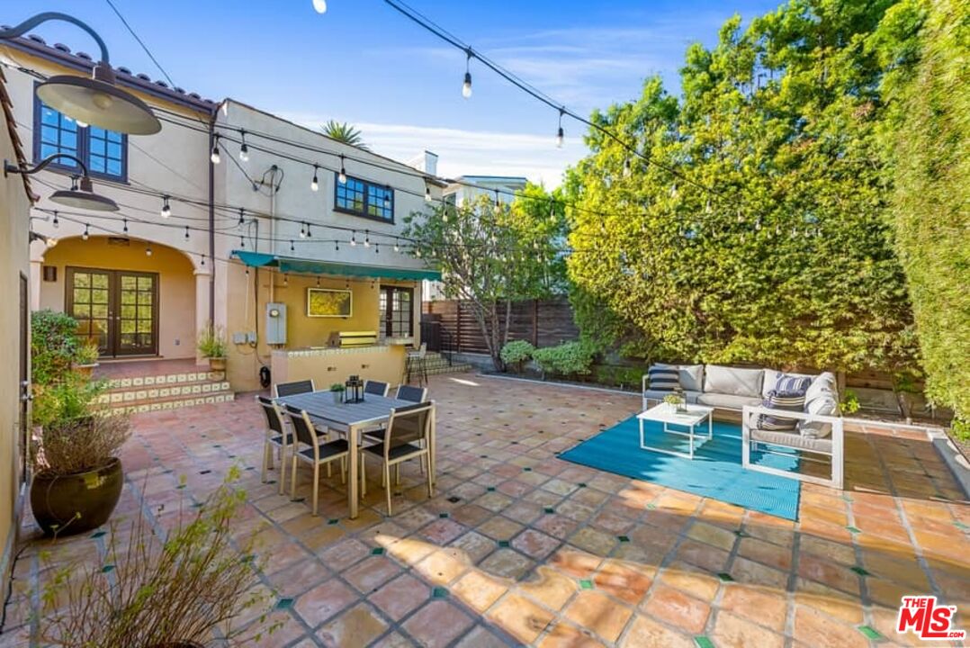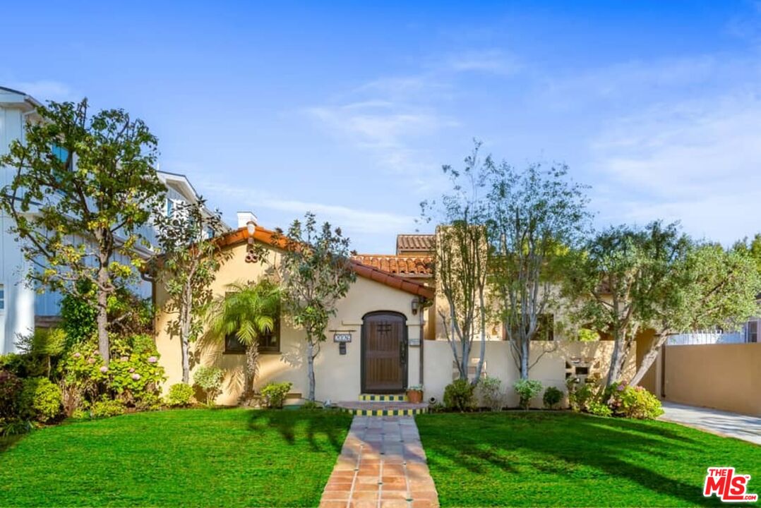 Beautifully updated Santa Barbara Courtyard 4 bed/2.75 bath 2-Story Spanish with incredible thought and detail in design and expanded floor plan, complimenting the unspoiled charm of the original character throughout. Inviting tiled front courtyard with gate opens to living room with dramatic barrel ceiling, chic wood paneled wall, fireplace with original tile design hearth, wood mantel, wall sconces and double French doors opening to front courtyard. Formal dining room with coved soffit ceiling opening to remodeled open sun-filled kitchen with stainless steel appliances including 6-burner Thermador range/oven, updated cabinetry with pantry cabinet and pull out drawers, desk workspace and breakfast nook opening to spacious family room and to the entertainer's backyard with covered back patio with archways and paver tiles to beautifully tiled backyard to create seating areas with outdoor built-in barbecue with counter covered with retractable awning, and gated driveway. 3 bed/1.75 bath downstairs, with 2 of the bedrooms including beautiful built-ins. Upstairs is the primary suite quarters with vaulted ceilings, treetop and Century City views, fireplace, 2nd laundry area, 2 custom-finished closets including a walk-in closet. Beautiful primary bath filled with natural light, dual basins, separate bath and shower and skylight. Additional features include archways, custom tiled bathrooms, hardwood floors, central ac/heat, Laundry area upstairs and downstairs, porte cochere and auto-gated driveway. Close proximity to Westwood Blvd. & Pico Blvd. restaurants and retail, Westfield Century City Mall, UCLA & Beverly Hills. Westwood Charter School.