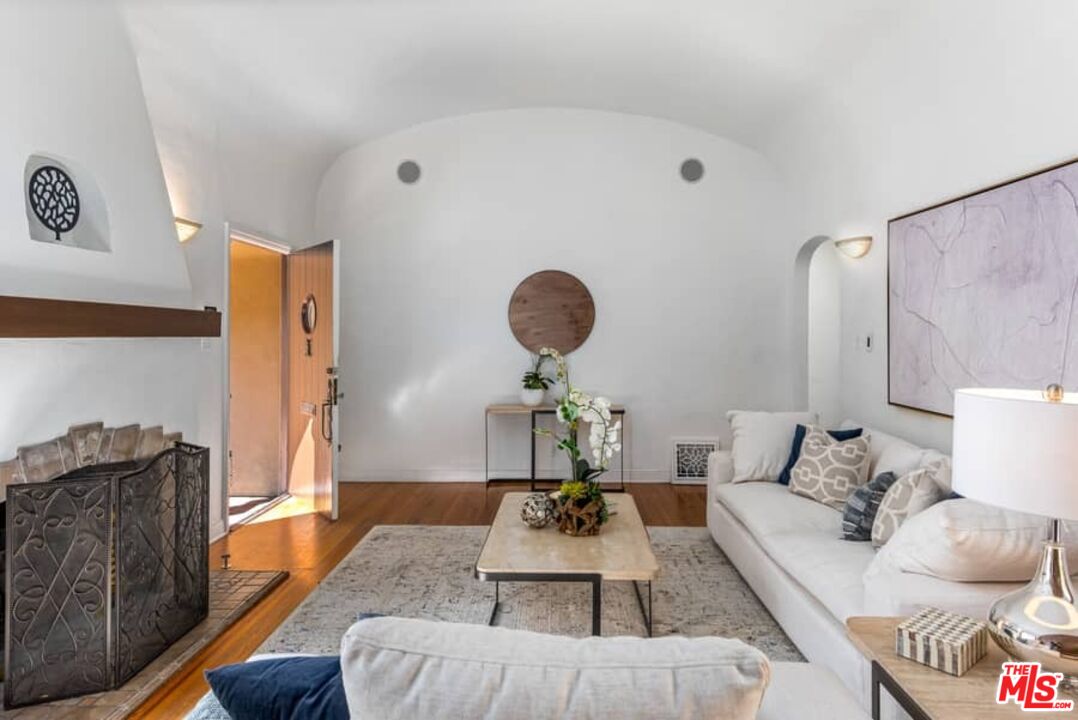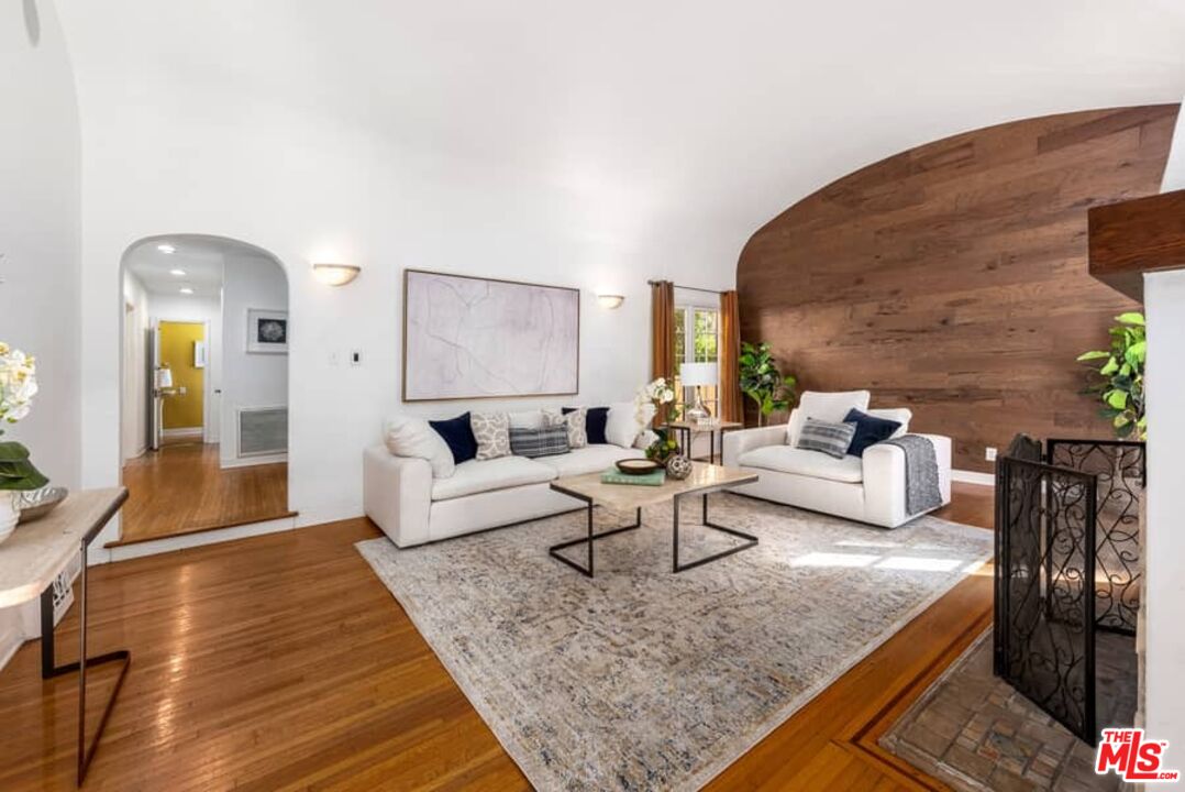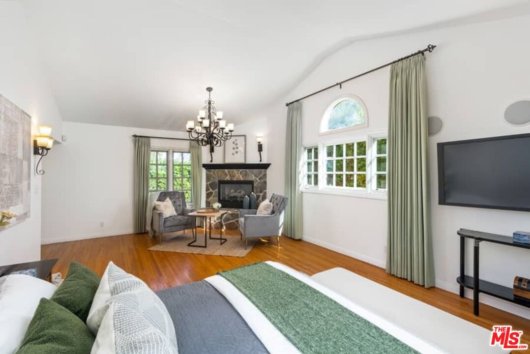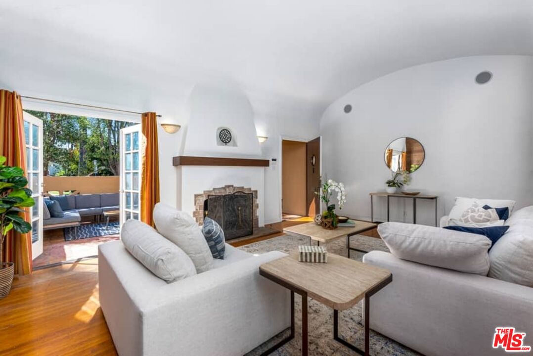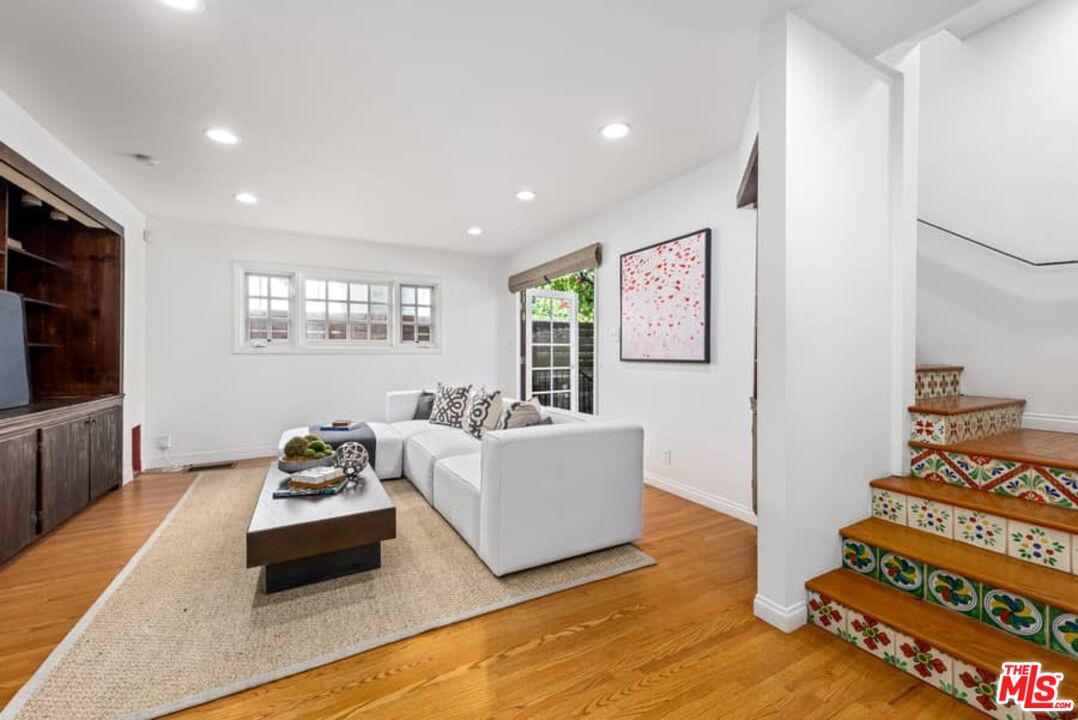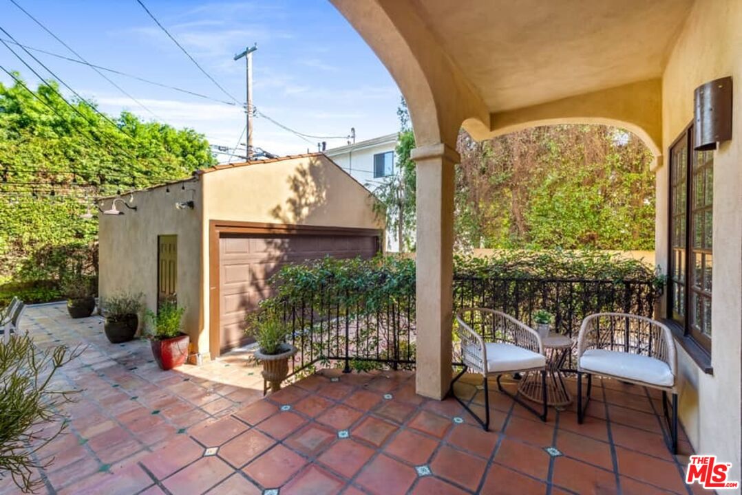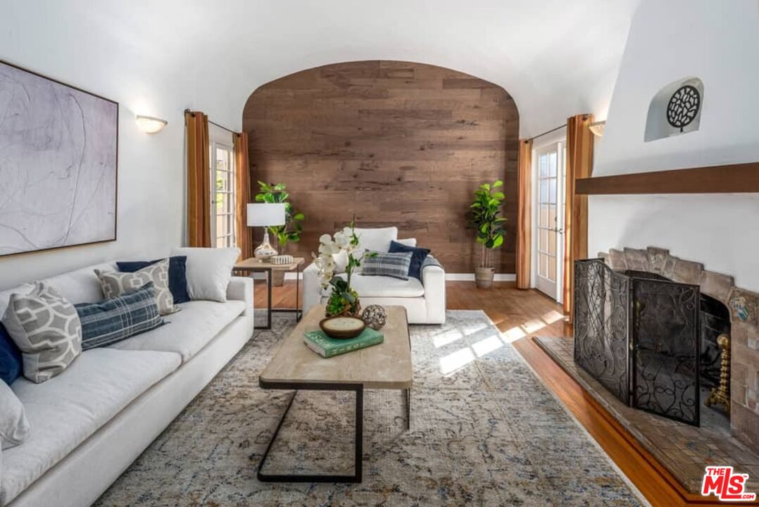 Beautifully updated Santa Barbara Courtyard 4 bed/2.75 bath 2-Story Spanish with incredible thought and detail in design and expanded floor plan, complimenting the unspoiled charm of the original character throughout. Inviting tiled front courtyard with gate opens to living room with dramatic barrel ceiling, chic wood paneled wall, fireplace with original tile design hearth, wood mantel, wall sconces and double French doors opening to front courtyard. Formal dining room with coved soffit ceiling opening to remodeled open sun-filled kitchen with stainless steel appliances including 6-burner Thermador range/oven, updated cabinetry with pantry cabinet and pull out drawers, desk workspace and breakfast nook opening to spacious family room and to the entertainer's backyard with covered back patio with archways and paver tiles to beautifully tiled backyard to create seating areas with outdoor built-in barbecue with counter covered with retractable awning, and gated driveway. 3 bed/1.75 bath downstairs, with 2 of the bedrooms including beautiful built-ins. Upstairs is the primary suite quarters with vaulted ceilings, treetop and Century City views, fireplace, 2nd laundry area, 2 custom-finished closets including a walk-in closet. Beautiful primary bath filled with natural light, dual basins, separate bath and shower and skylight. Additional features include archways, custom tiled bathrooms, hardwood floors, central ac/heat, Laundry area upstairs and downstairs, porte cochere and auto-gated driveway. Close proximity to Westwood Blvd. & Pico Blvd. restaurants and retail, Westfield Century City Mall, UCLA & Beverly Hills. Westwood Charter School.