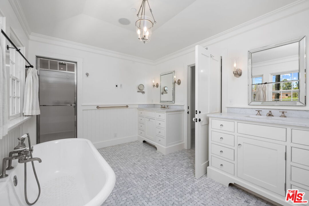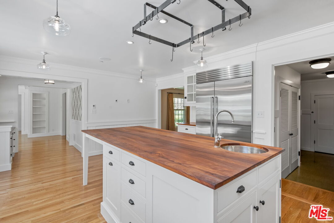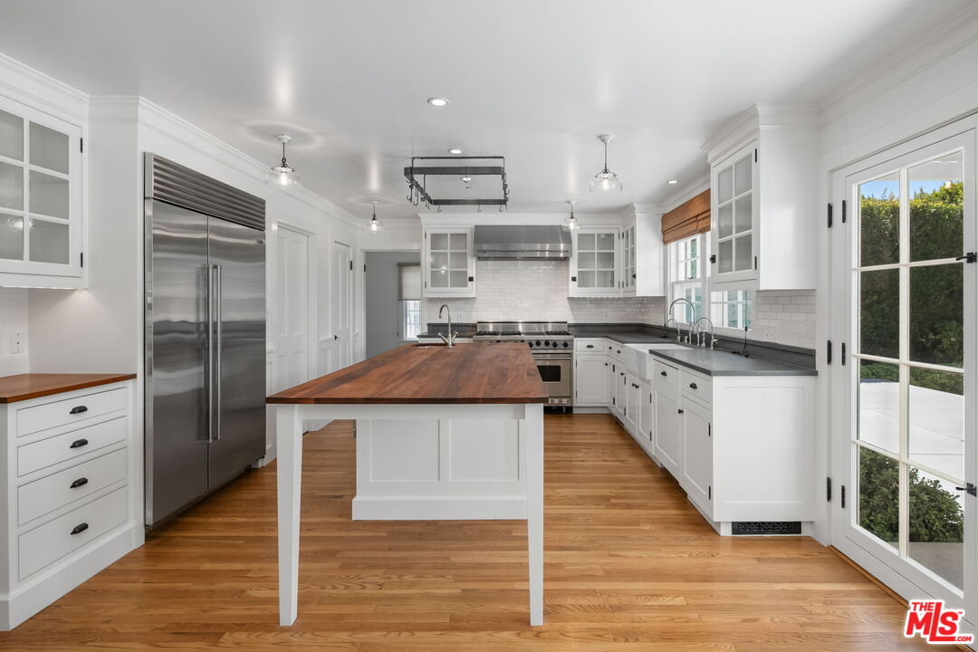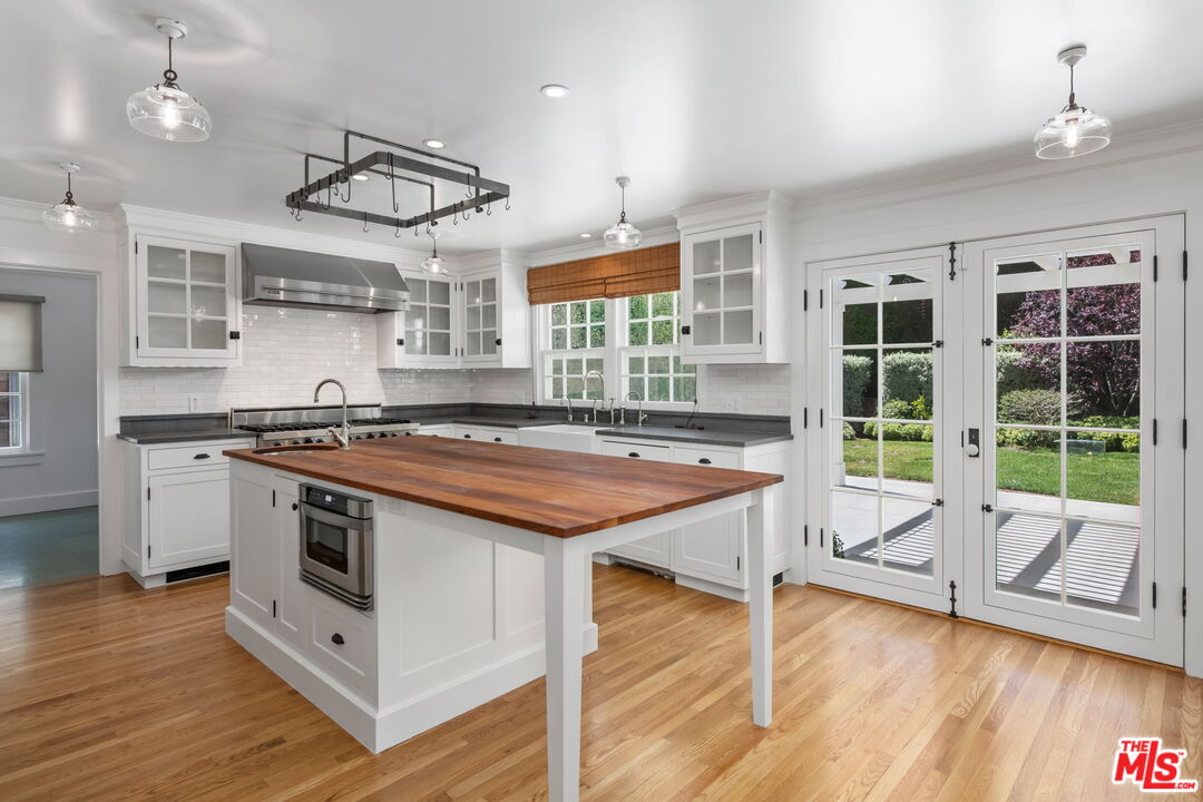 Extensively remodeled California Craftsman completed by widely published architect Lewin Wertheimer on rare oversized lot (80 ft wide-11,939 Sq Ft) in prime N of Montana, SM. Wonderful st presence, beautiful detailing and finishes, perfect floor plan, pristine baths and kitchen, and large grassy yard. Formal Living rm, fam rm & cook's kitch all open thru French drs to ctyd, outdr fireplace, trellis covered patio, gardens & expansive lawn. Fantastic, awe-inspiring huge upstairs fam rm/playroom/game room w/ vaulted wd ceiling. 5 BR & 4.5 BA, incl master w/ sitting area, pvt terrace that overlooks the garden, lovely marble bath & 2 walk-in closets. Other spaces/amenities incl a dining area/2nd den, mudroom with cubbies and extra refrigerator/freezer, laundry rm w/ dbl washers & dryers and oversized 2 1/2 car garage w/ plenty of rm for storage. A very special offering.