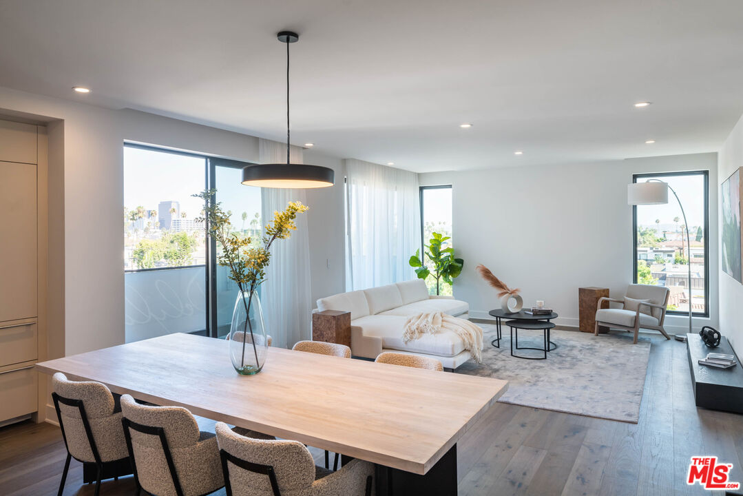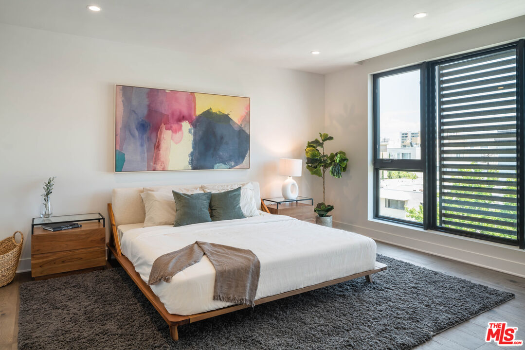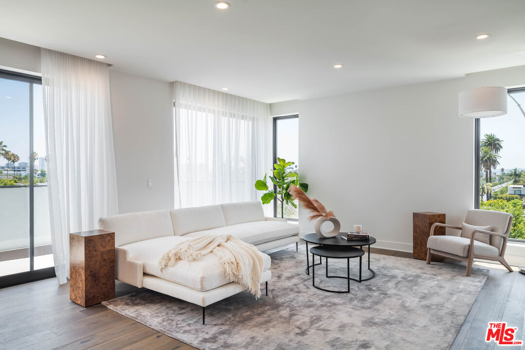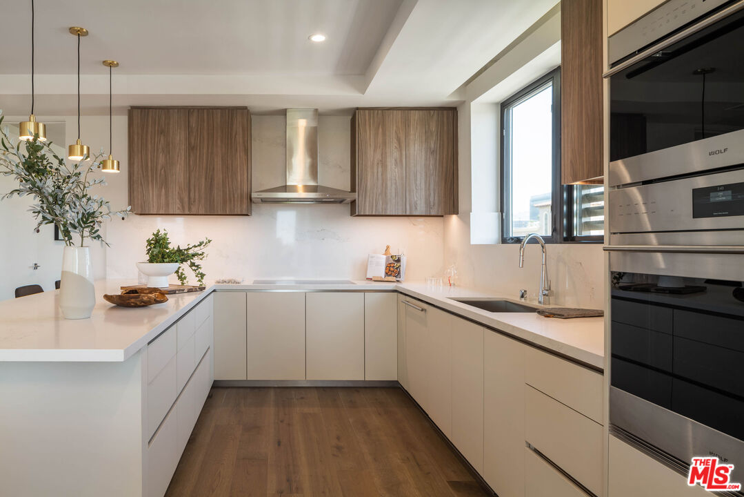 LAST REMAINING EAST FACING PENTHOUSE! This 3 bedroom, 3 bath residence has a Northeast facing corner location with private dedicated rooftop. With 2,497 sq. ft. of living space, the floorplan has an open living room to the kitchen which also provides an expansive wrap-around island. You will find 7 " hardwood plank flooring throughout, Calacutta Nuvo marbled Caesarstone countertops and split finish Hartmark cabinetry in the kitchen, consisting of wood grain uppers and light cream matte lowers. Appliances include stainless steel Subzero 36" paneled refrigerator and dishwasher by Asko/Subzero; Wolf built-in E-series transitional 36" induction cooktop with single oven and speed oven and 36" hood. Statuario Maximus Caesarstone in primary bath and secondary baths, beautiful Carrara Onyx grey polished tile slab showers and 12 x 24" porcelain Emser flooring. DecoraPort LED touch button control and anti-fog mirrors in primary baths as well. Duravit sinks and water closets and Gessi plumbing fixtures. LED recessed lighting and 5 " squared edge baseboard throughout. At Delyla, you will have the luxury of an onsite concierge, community lounge and gym, outdoor lounge with pizza oven and a secured, subterranean parking garage. Situated in a highly walkable neighborhood and close to the best restaurants and retail on Robertson Blvd, Delyla's close proximity to Cedars-Sinai Medical Center, and other West LA amenities, makes this a prime condo opportunity in the area.