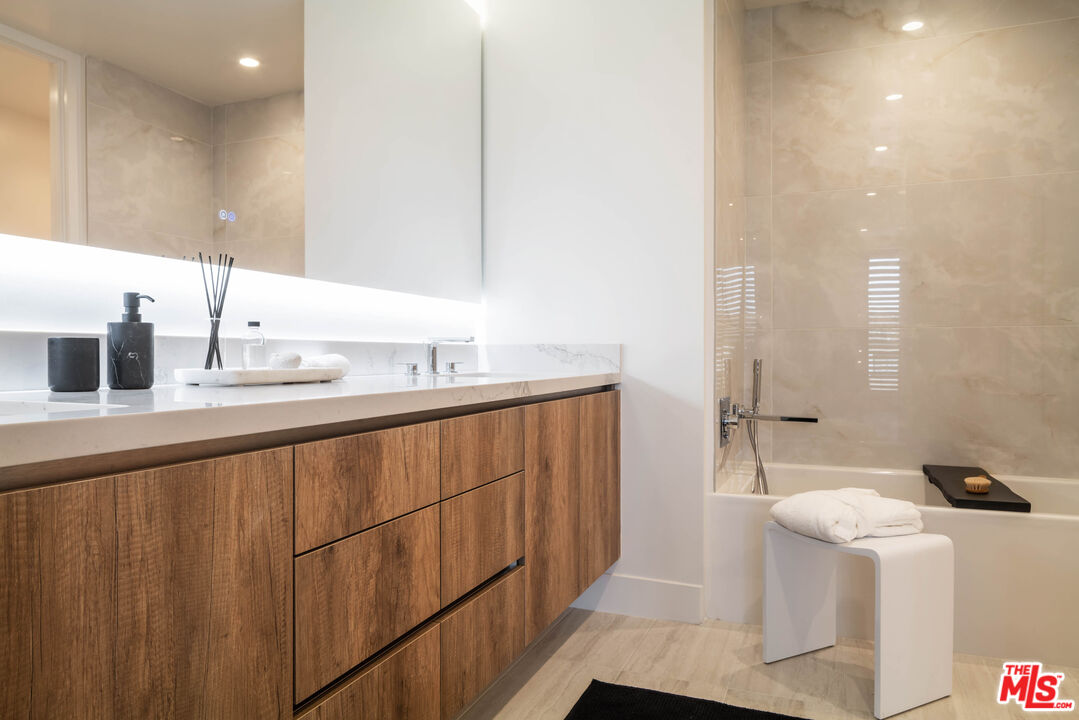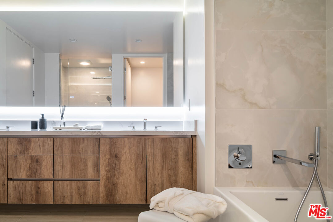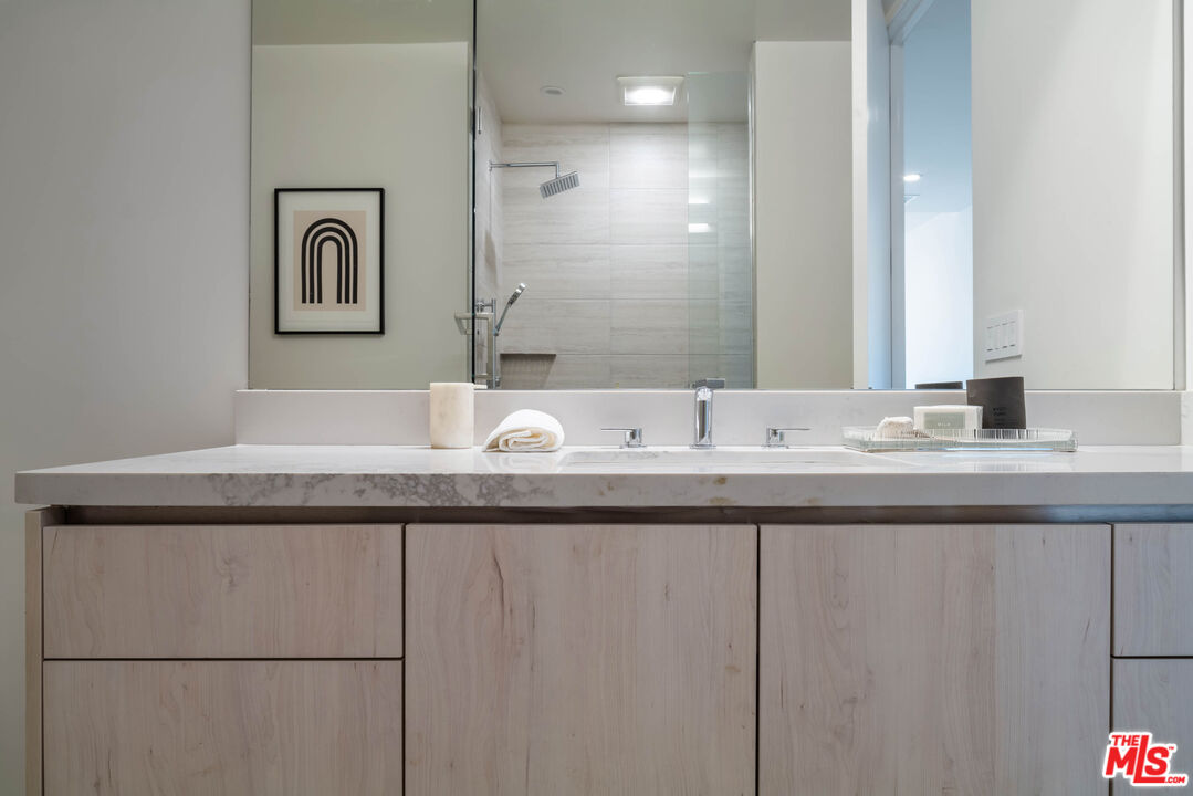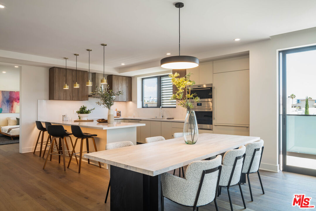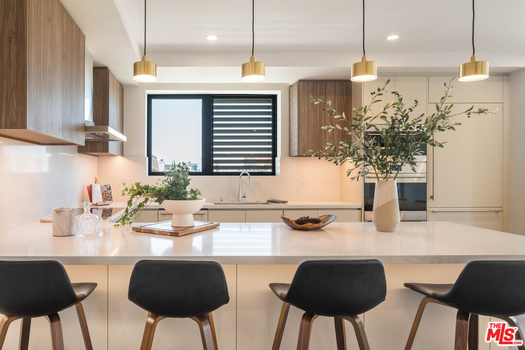 LAST REMAINING EAST FACING PENTHOUSE! This 3 bedroom, 3 bath residence has a Northeast facing corner location with private dedicated rooftop. With 2,497 sq. ft. of living space, the floorplan has an open living room to the kitchen which also provides an expansive wrap-around island. You will find 7 " hardwood plank flooring throughout, Calacutta Nuvo marbled Caesarstone countertops and split finish Hartmark cabinetry in the kitchen, consisting of wood grain uppers and light cream matte lowers. Appliances include stainless steel Subzero 36" paneled refrigerator and dishwasher by Asko/Subzero; Wolf built-in E-series transitional 36" induction cooktop with single oven and speed oven and 36" hood. Statuario Maximus Caesarstone in primary bath and secondary baths, beautiful Carrara Onyx grey polished tile slab showers and 12 x 24" porcelain Emser flooring. DecoraPort LED touch button control and anti-fog mirrors in primary baths as well. Duravit sinks and water closets and Gessi plumbing fixtures. LED recessed lighting and 5 " squared edge baseboard throughout. At Delyla, you will have the luxury of an onsite concierge, community lounge and gym, outdoor lounge with pizza oven and a secured, subterranean parking garage. Situated in a highly walkable neighborhood and close to the best restaurants and retail on Robertson Blvd, Delyla's close proximity to Cedars-Sinai Medical Center, and other West LA amenities, makes this a prime condo opportunity in the area.