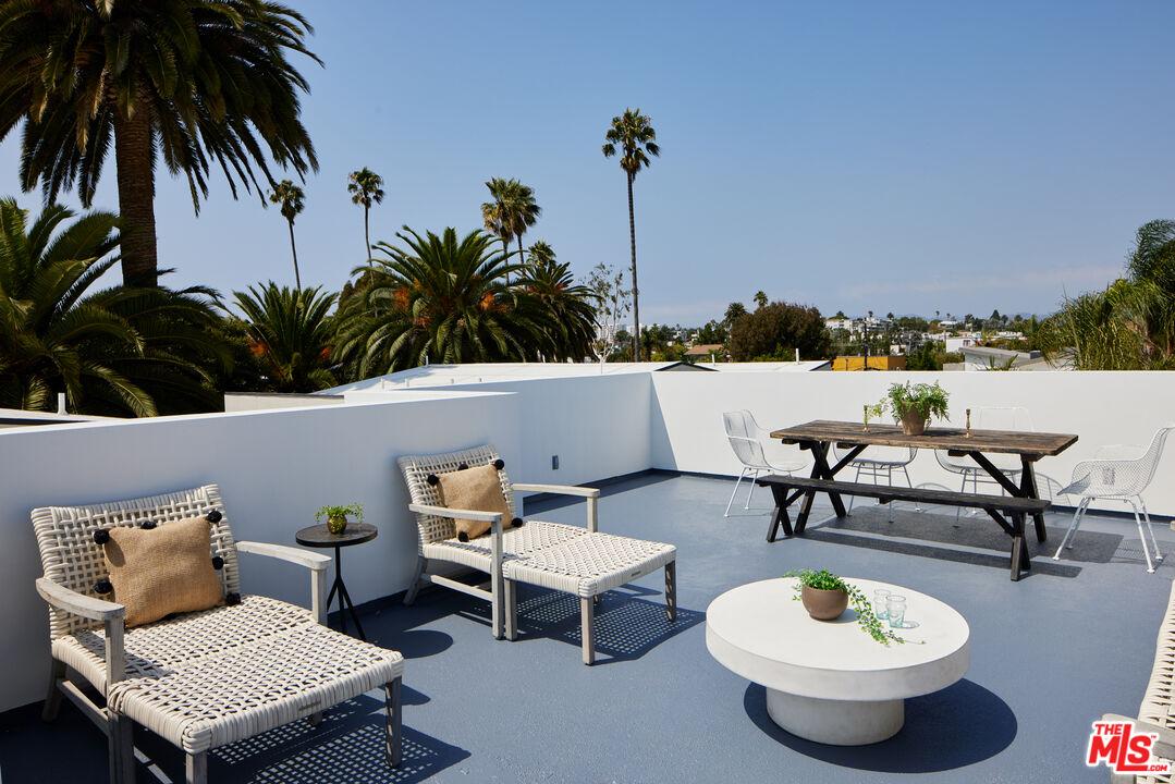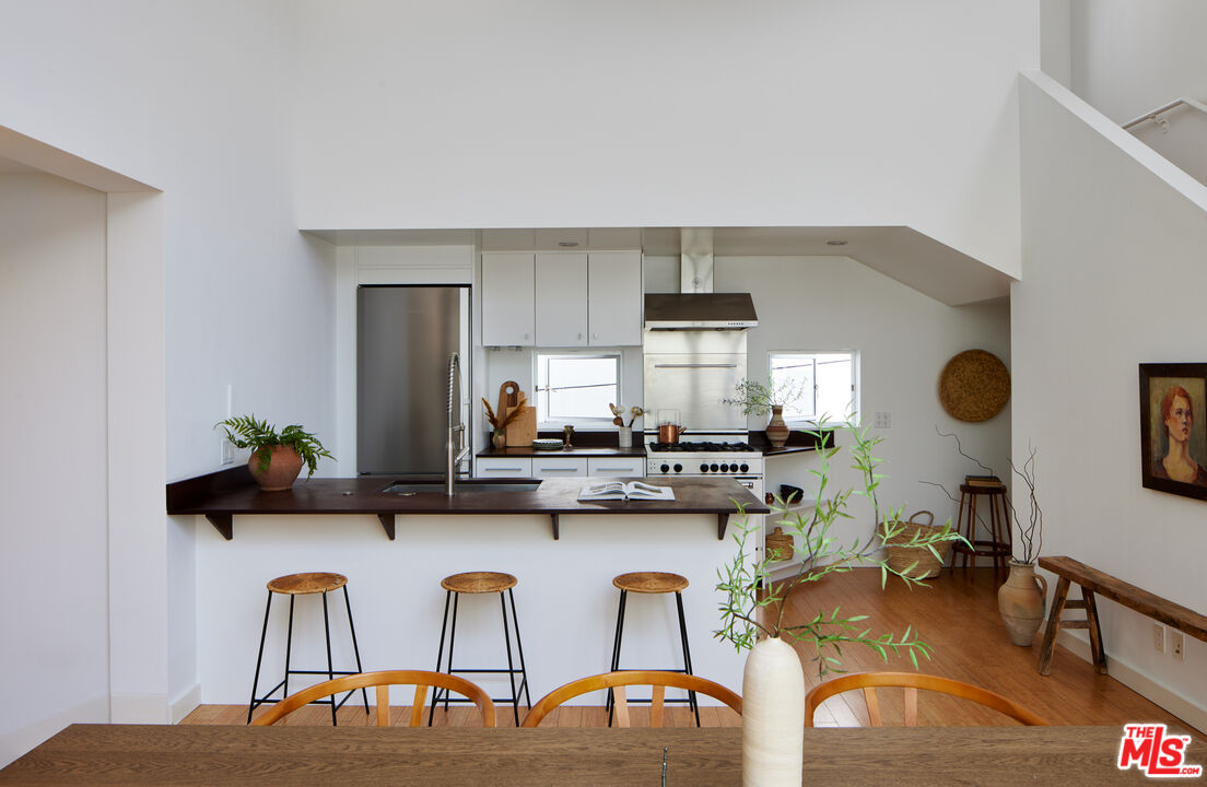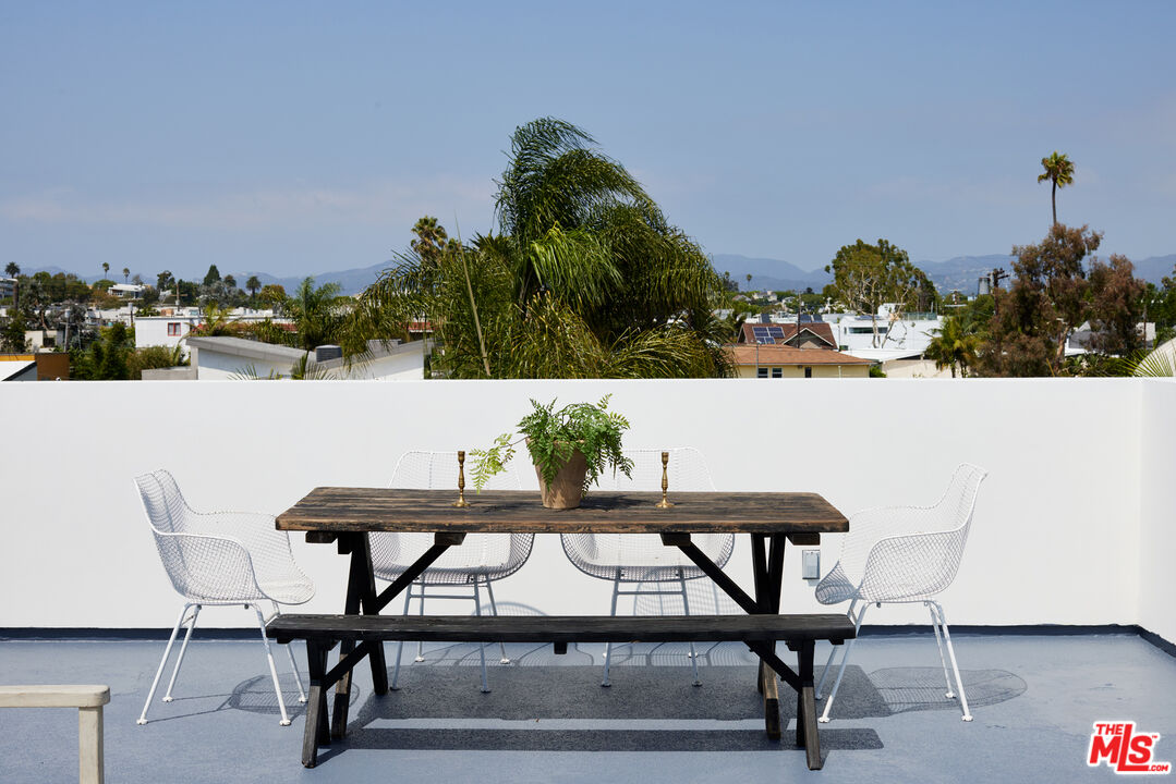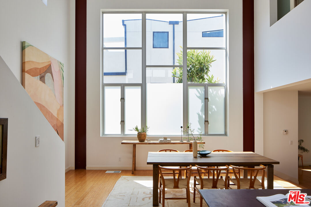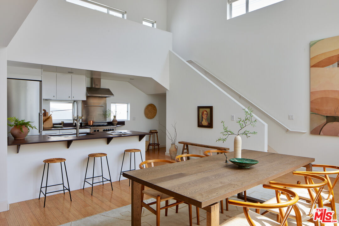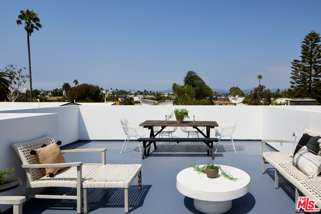 Vibrant, beautifully designed architectural townhome situated in one of the most desirable pockets of Venice. A true work of art, this spacious and eco-friendly home was built in 2009 with no expense spared. Set back from the street beyond lush bamboo hedges, this celebrity-owned property offers the utmost tranquility and privacy. Step through the home's private entrance into light-filled, airy spaces with soaring ceilings, beautiful bamboo floors, and an abundance of large glass windows throughout. The 2 bedroom + 2 bathroom townhome, which feels like its own house, offers a floor plan that functions brilliantly for easy living and entertaining. The open living and dining areas flow seamlessly to an impressive kitchen that features PaperStone countertops, a breakfast bar, ample storage, and high-end appliances including a Bertazzoni range, Leibherr refrigerator, and Bosch dishwasher. Beyond the main living spaces you'll find a lovely guest bedroom with tree-filled views, and an impeccably designed guest bathroom with a spa-like shower and extra storage. The incredible upstairs primary bedroom boasts a large lounge area, custom walk-in closet, and a sumptuous en-suite bathroom with separate soaking tub and rain shower, and double vanity. The primary bedroom leads to a sprawling roof deck with breathtaking 360-degree views, creating the perfect space to enjoy morning coffee, evening sunsets, and weekend brunches with friends. The expansive roof space provides the opportunity to plant an edible garden, as it was designed and piped with the intention of growing your own food. The home's garage offers direct access, two tandem parking spaces, and plenty of extra storage. Perfectly located West of Lincoln and just a few blocks away from both Abbot Kinney and Rose Ave, close to the endless amount of incredible restaurants and shops that the neighborhood has to offer. A true oasis in the city, this one is not to be missed.