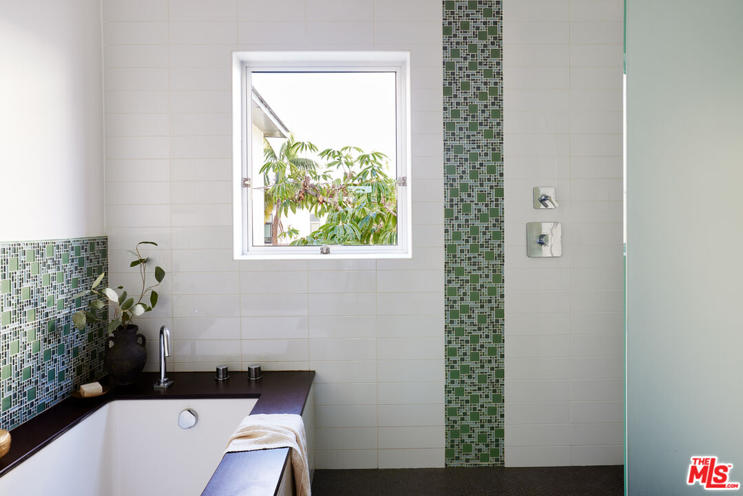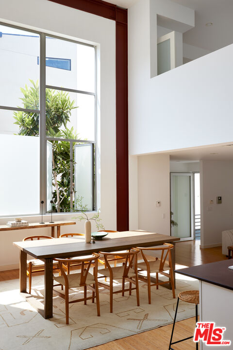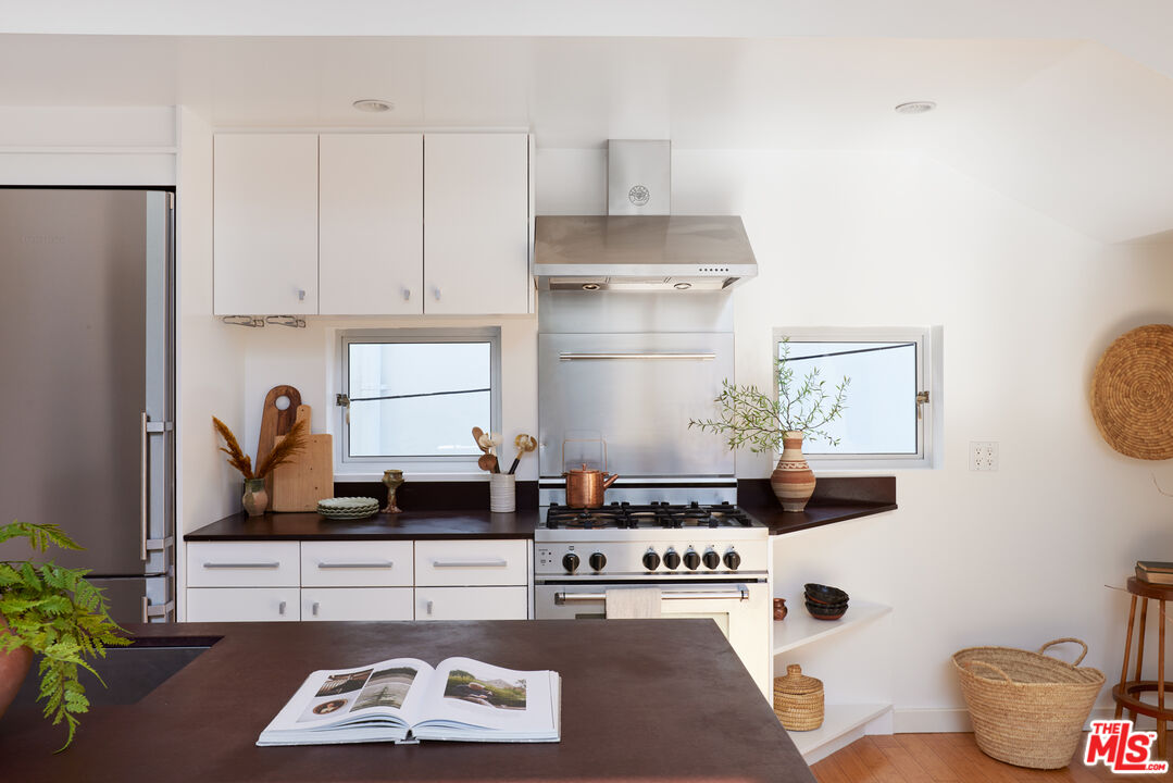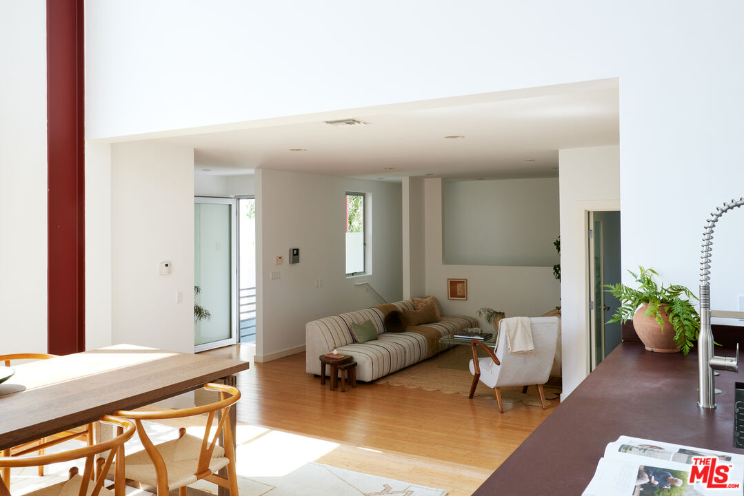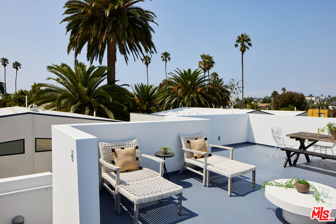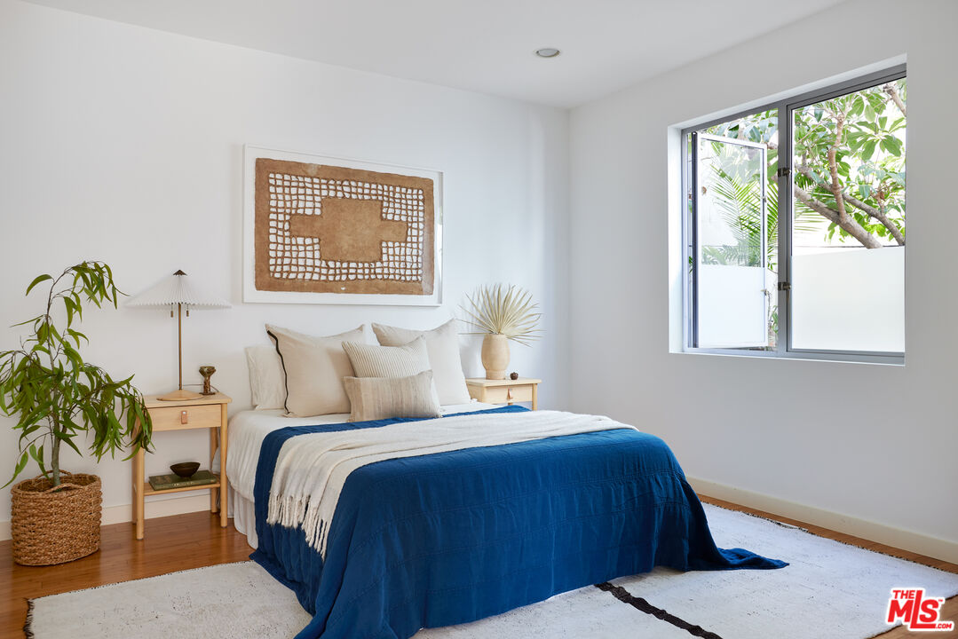 Vibrant, beautifully designed architectural townhome situated in one of the most desirable pockets of Venice. A true work of art, this spacious and eco-friendly home was built in 2009 with no expense spared. Set back from the street beyond lush bamboo hedges, this celebrity-owned property offers the utmost tranquility and privacy. Step through the home's private entrance into light-filled, airy spaces with soaring ceilings, beautiful bamboo floors, and an abundance of large glass windows throughout. The 2 bedroom + 2 bathroom townhome, which feels like its own house, offers a floor plan that functions brilliantly for easy living and entertaining. The open living and dining areas flow seamlessly to an impressive kitchen that features PaperStone countertops, a breakfast bar, ample storage, and high-end appliances including a Bertazzoni range, Leibherr refrigerator, and Bosch dishwasher. Beyond the main living spaces you'll find a lovely guest bedroom with tree-filled views, and an impeccably designed guest bathroom with a spa-like shower and extra storage. The incredible upstairs primary bedroom boasts a large lounge area, custom walk-in closet, and a sumptuous en-suite bathroom with separate soaking tub and rain shower, and double vanity. The primary bedroom leads to a sprawling roof deck with breathtaking 360-degree views, creating the perfect space to enjoy morning coffee, evening sunsets, and weekend brunches with friends. The expansive roof space provides the opportunity to plant an edible garden, as it was designed and piped with the intention of growing your own food. The home's garage offers direct access, two tandem parking spaces, and plenty of extra storage. Perfectly located West of Lincoln and just a few blocks away from both Abbot Kinney and Rose Ave, close to the endless amount of incredible restaurants and shops that the neighborhood has to offer. A true oasis in the city, this one is not to be missed.