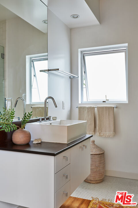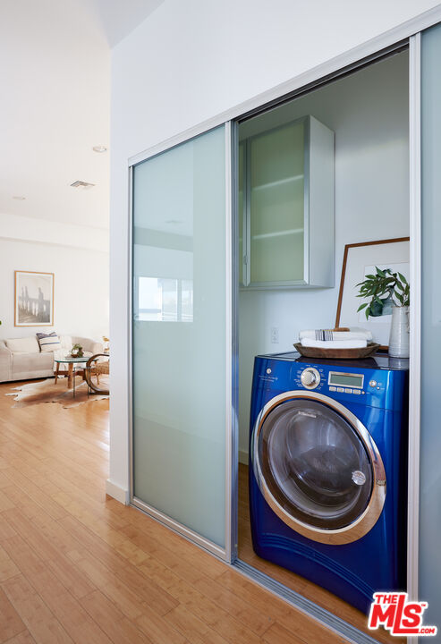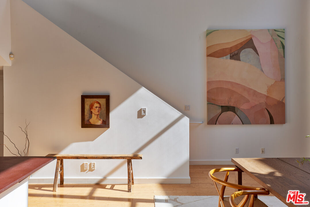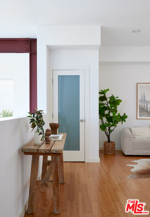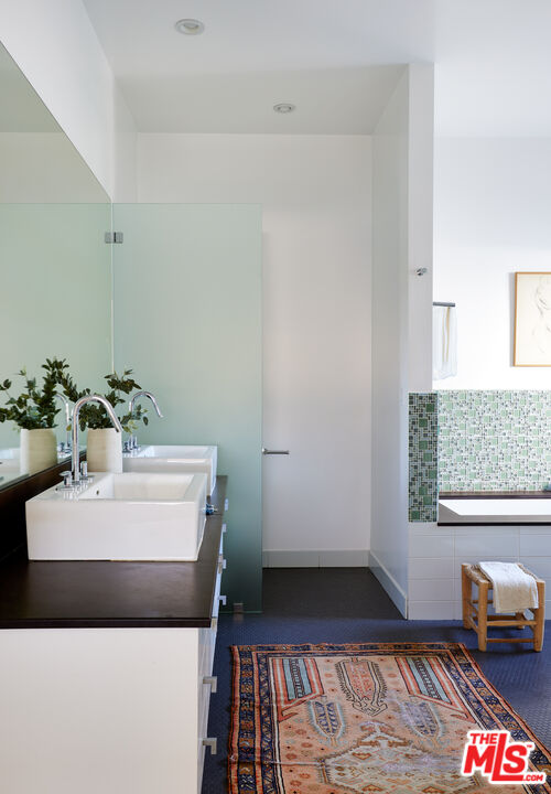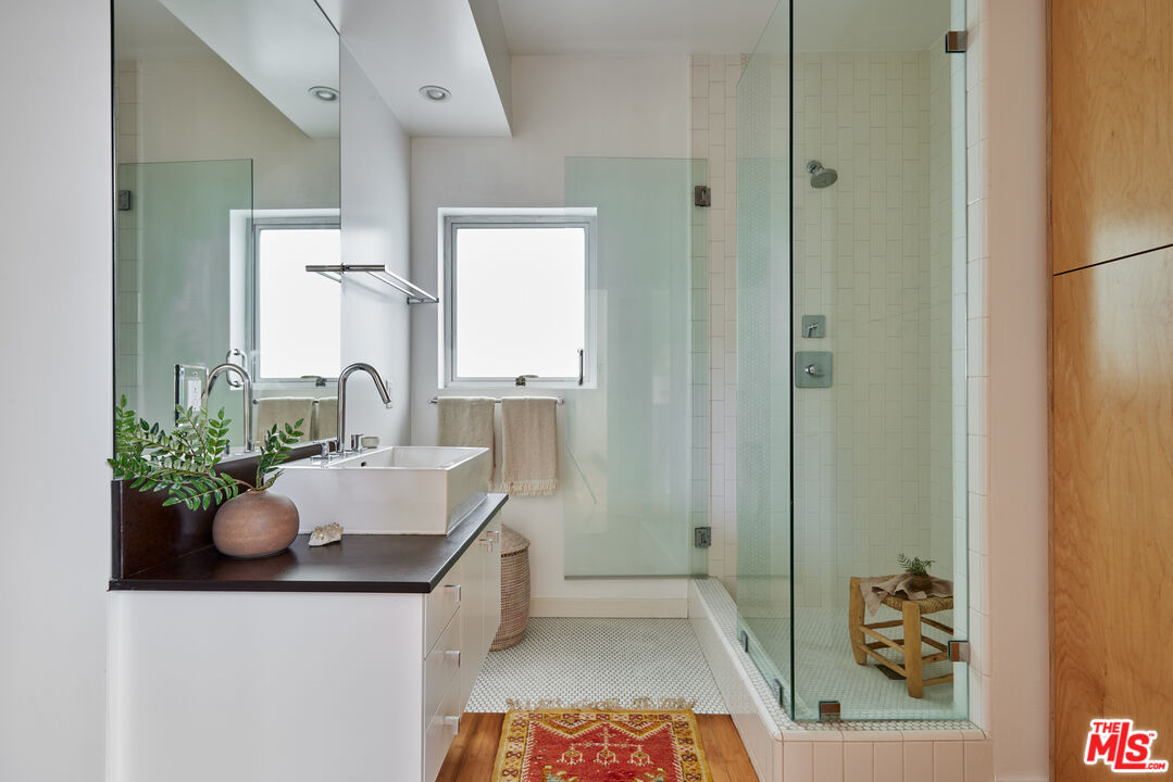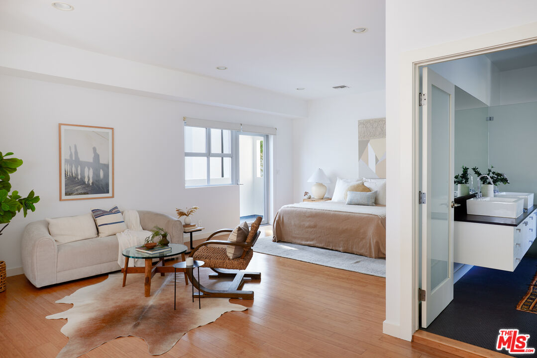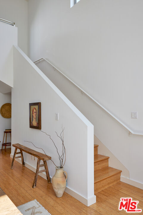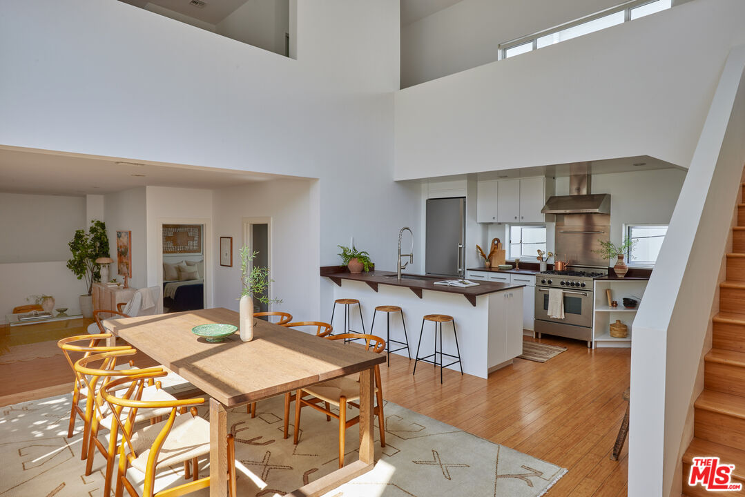 Vibrant, beautifully designed architectural townhome situated in one of the most desirable pockets of Venice. A true work of art, this spacious and eco-friendly home was built in 2009 with no expense spared. Set back from the street beyond lush bamboo hedges, this celebrity-owned property offers the utmost tranquility and privacy. Step through the home's private entrance into light-filled, airy spaces with soaring ceilings, beautiful bamboo floors, and an abundance of large glass windows throughout. The 2 bedroom + 2 bathroom townhome, which feels like its own house, offers a floor plan that functions brilliantly for easy living and entertaining. The open living and dining areas flow seamlessly to an impressive kitchen that features PaperStone countertops, a breakfast bar, ample storage, and high-end appliances including a Bertazzoni range, Leibherr refrigerator, and Bosch dishwasher. Beyond the main living spaces you'll find a lovely guest bedroom with tree-filled views, and an impeccably designed guest bathroom with a spa-like shower and extra storage. The incredible upstairs primary bedroom boasts a large lounge area, custom walk-in closet, and a sumptuous en-suite bathroom with separate soaking tub and rain shower, and double vanity. The primary bedroom leads to a sprawling roof deck with breathtaking 360-degree views, creating the perfect space to enjoy morning coffee, evening sunsets, and weekend brunches with friends. The expansive roof space provides the opportunity to plant an edible garden, as it was designed and piped with the intention of growing your own food. The home's garage offers direct access, two tandem parking spaces, and plenty of extra storage. Perfectly located West of Lincoln and just a few blocks away from both Abbot Kinney and Rose Ave, close to the endless amount of incredible restaurants and shops that the neighborhood has to offer. A true oasis in the city, this one is not to be missed.