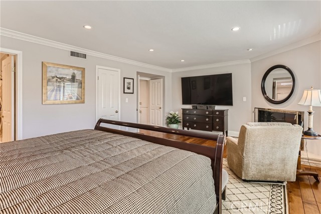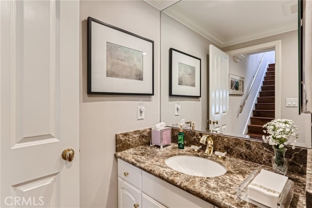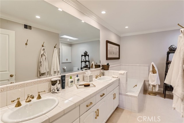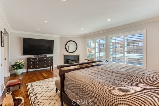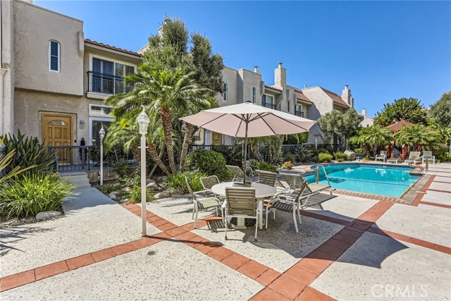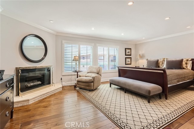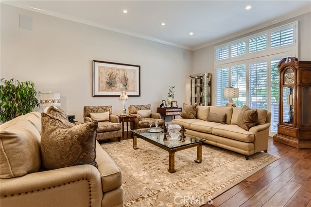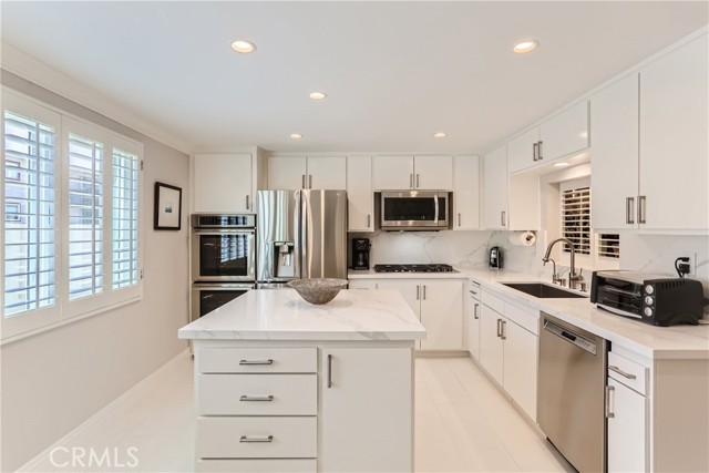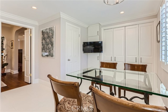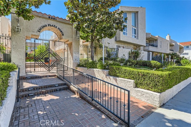 One of a kind in Sophistication & Quality! This rare elegant Townhome is located in desirable Encino Plaza North. This updated to the 9's home has all of the top of the line finishes & fixtures one would expect & more. From the gorgeous Walnut flooring, Upgraded windows & Louvered shutters, designer lighting throughout, to the integrated wi-fi enabled Lutron LED lighting system, this home has it all. From the newly tiled front porch enter into the foyer and be greeted by the large light filled living space w/high ceilings, crown moldings, Walnut floors, tall baseboards, a stunning built-in wood paneled Entertainment wall with a decorative fireplace & a 82" flat screen television with the very best surround sound system. The living room also features a wall of windows leading to the front patio which is perfect for enjoying the day surrounded by lush foliage & gardens. Step up to the separate dining room or den overlooking the living room through a stunning brass & glass railing giving the feeling of openness & elegance. The adjacent remodeled cooks kitchen & breakfast area features classic limestone flooring, a large center island, quartz counters, top of the line stainless appliances(Bosch, Thermador, LG) & plenty of cabinetry. Adjacent is a laundry area and additional pantry storage. A convenient powder room is located off the living room. Up the brass & glass railed walnut staircase are two very large bedrooms (could be 2 primary's). The Primary bedroom along with the Walnut floors & Crown moldings features a gas fireplace, 82" flat screen television & a fully outfitted walk-in closet. A large en-suite spa like bath with tub & separate shower is the perfect way to start the day. The guest room/2nd primary/office is just as comfortable with soaring vaulted ceiling, 82" flat screen television, en-suite bath w/shower & walk-in closet. This home features direct access to the fully finished 2 car garage with custom storage as well as epoxy finished flooring. Newer systems, copper plumbing & more are upgrades to be appreciated. This home is immaculate from top to bottom. The well maintained complex features two inviting pools & spas, two story clubhouse with fitness center, earthquake insurance, plenty of guest parking spots and more. Move right in!